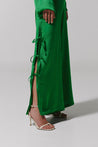 Introducing the "Parma Pants" in Emerald Green – wide-leg pants crafted in textured fabric with side slits and adjustable ties. Designed with a reinforced waistband, side zipper closure, and unlined for a lightweight feel.