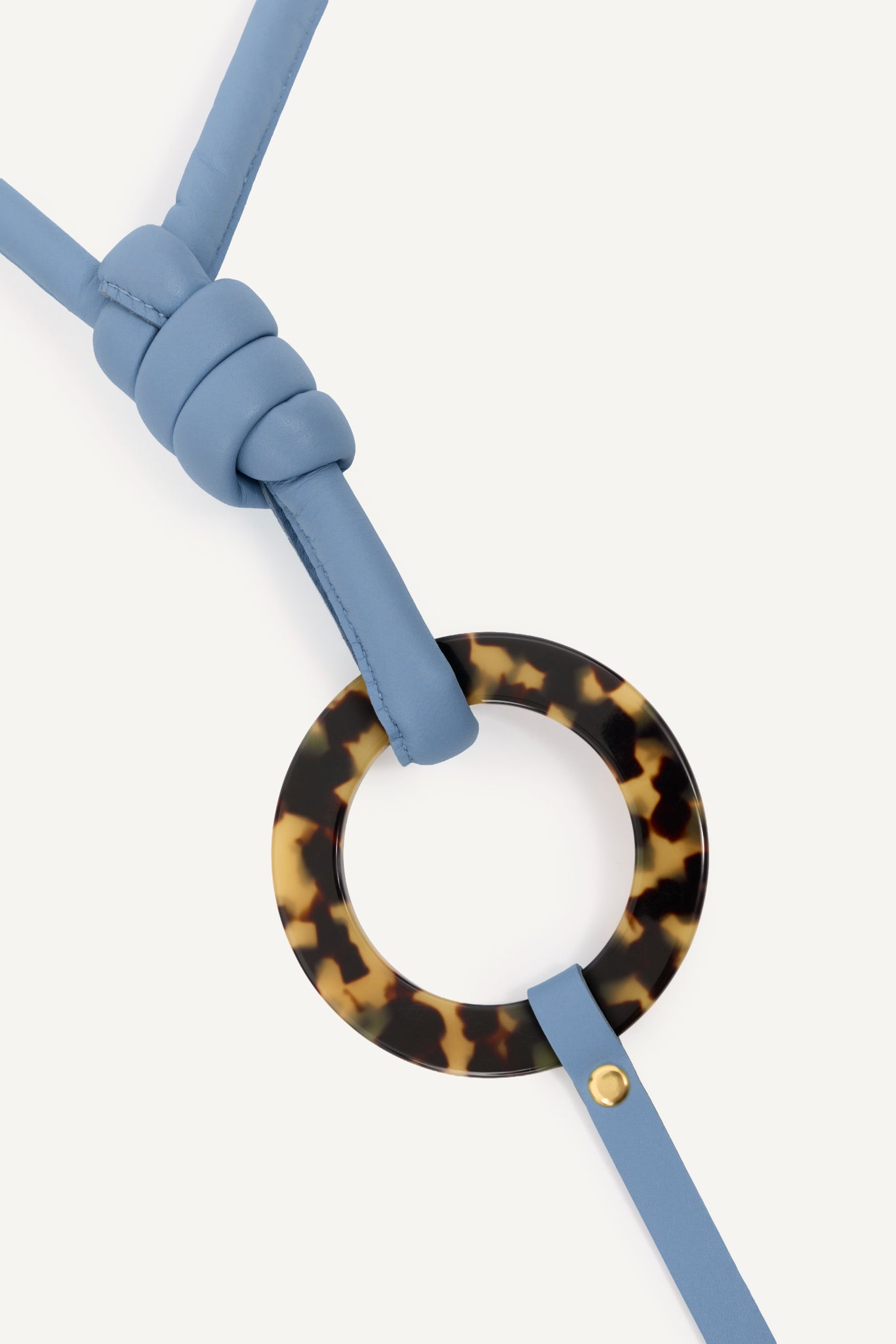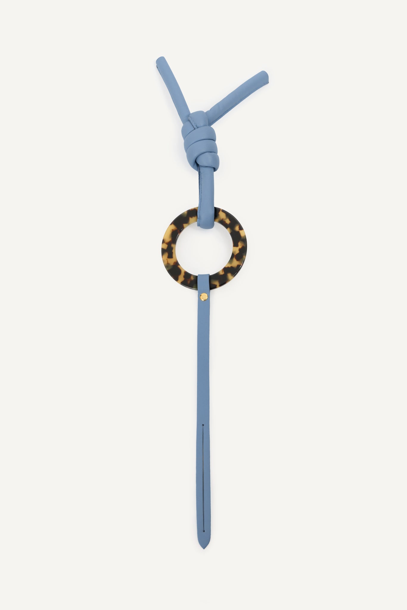Charm elaborado en piel de color Azul con anilla de resina de carey.