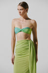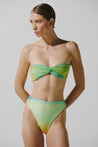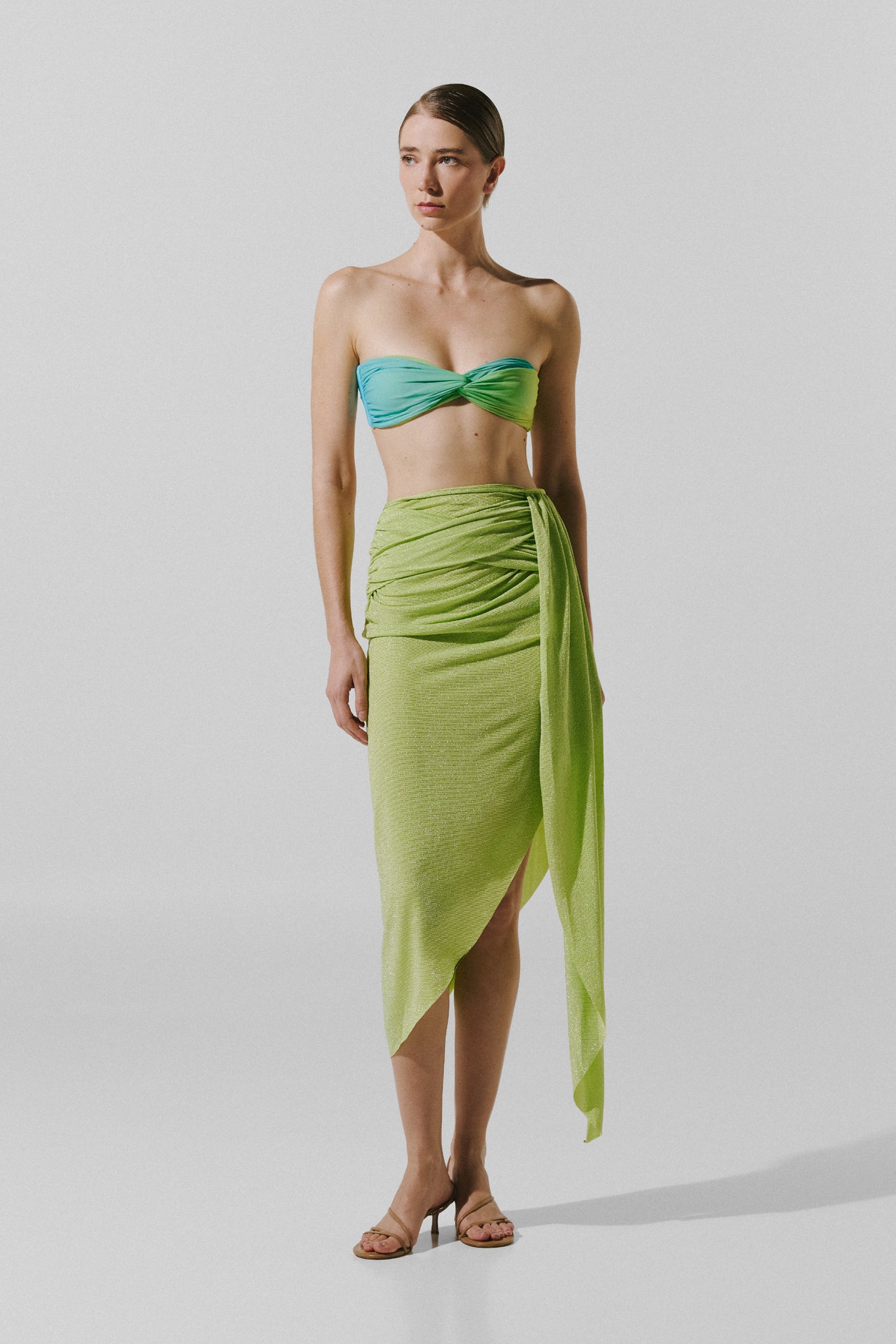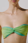 Introduciendo el "Bikini Top Vera" en Samba - un vibrante top bandeau con elegantes detalles plisados, lo que lo convierte en la elección perfecta para tu ropa de baño. Completa el look combinándolo con el "Bikini Inferior Vera" en Samba para un estilo chic y coordinado.