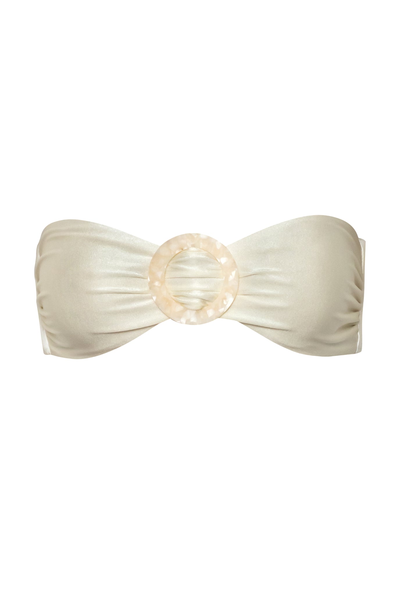 Presentamos el "Nala Bikini Top" en Ivory – un diseño strapless con detalle de argolla al frente. Con varillas laterales, sin copas y cierre con gancho en la espalda. Completamente forrado para soporte y comodidad. Combínalo con el bottom compañero para un look coordinado.