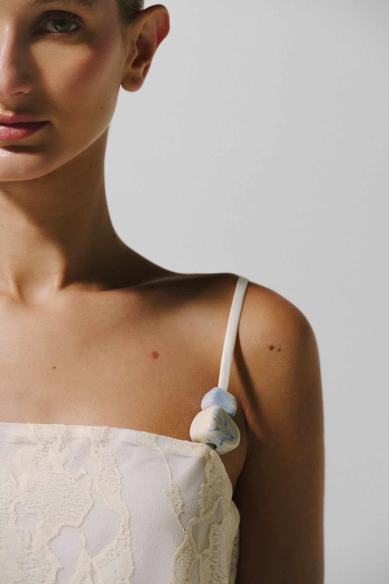 Presentamos el "Porto Top" en Ivory – un top con cuello cuadrado, tiras ajustables y tela de encaje. Adornado con piedras de resina para un acabado distintivo y completamente forrado para mayor cobertura. CombĂnalo con el pantalĂłn a juego para un look completo.