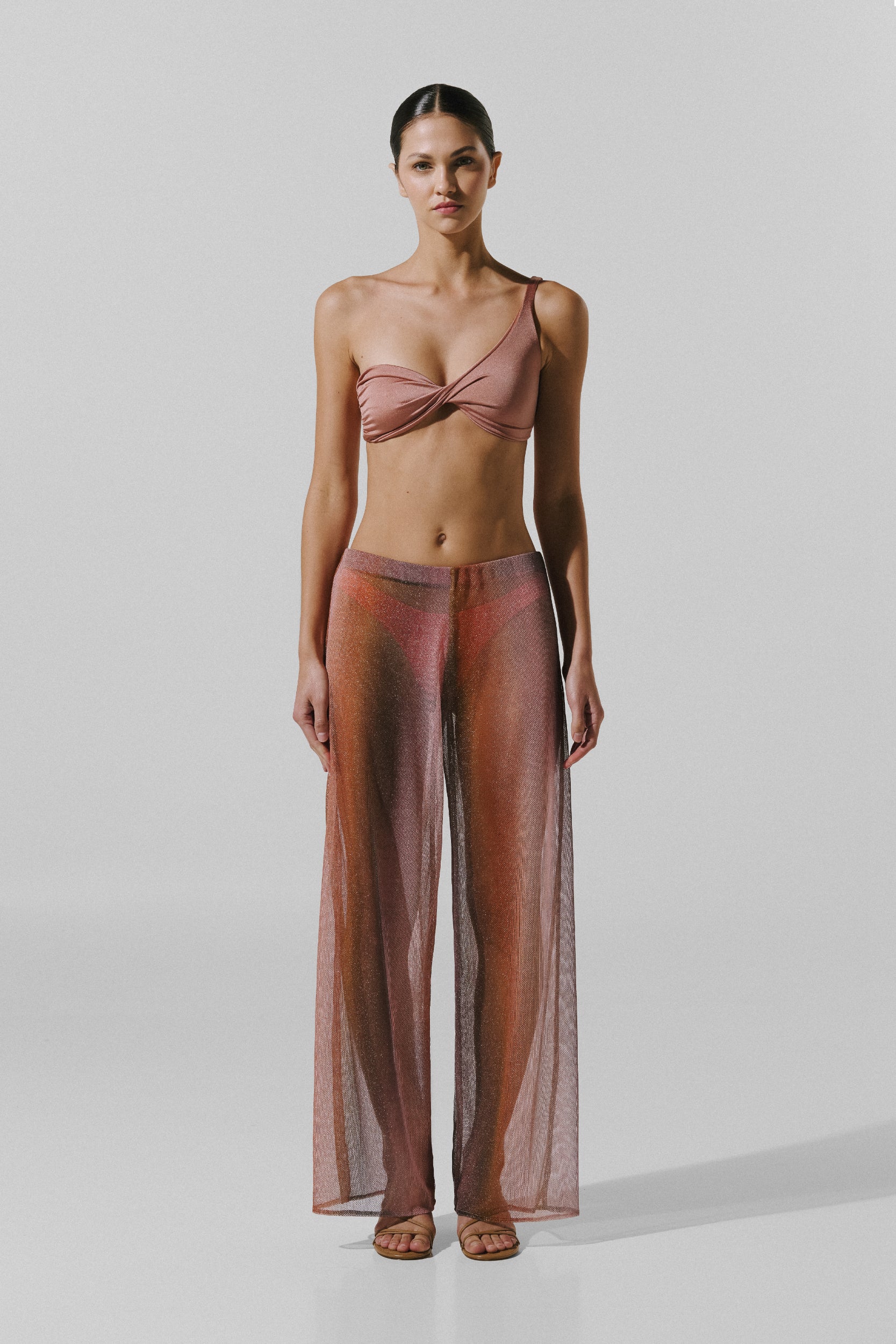 Introducing the "Gem Pants" in Quartz – high-waisted wide-leg pants crafted from a sheer, shiny mesh fabric. Designed with an elastic waistband for effortless wear. Unlined for a lightweight and fluid silhouette.