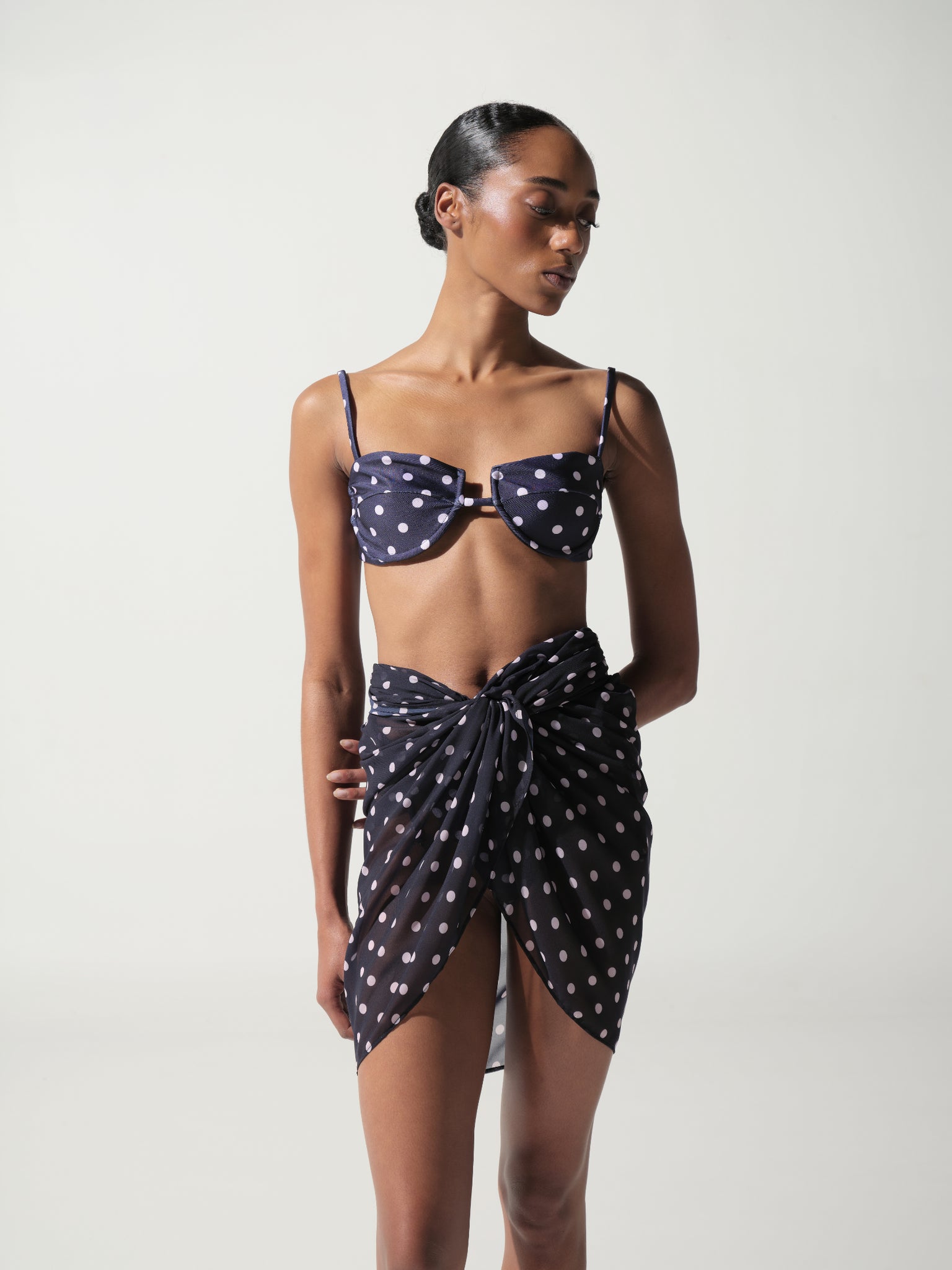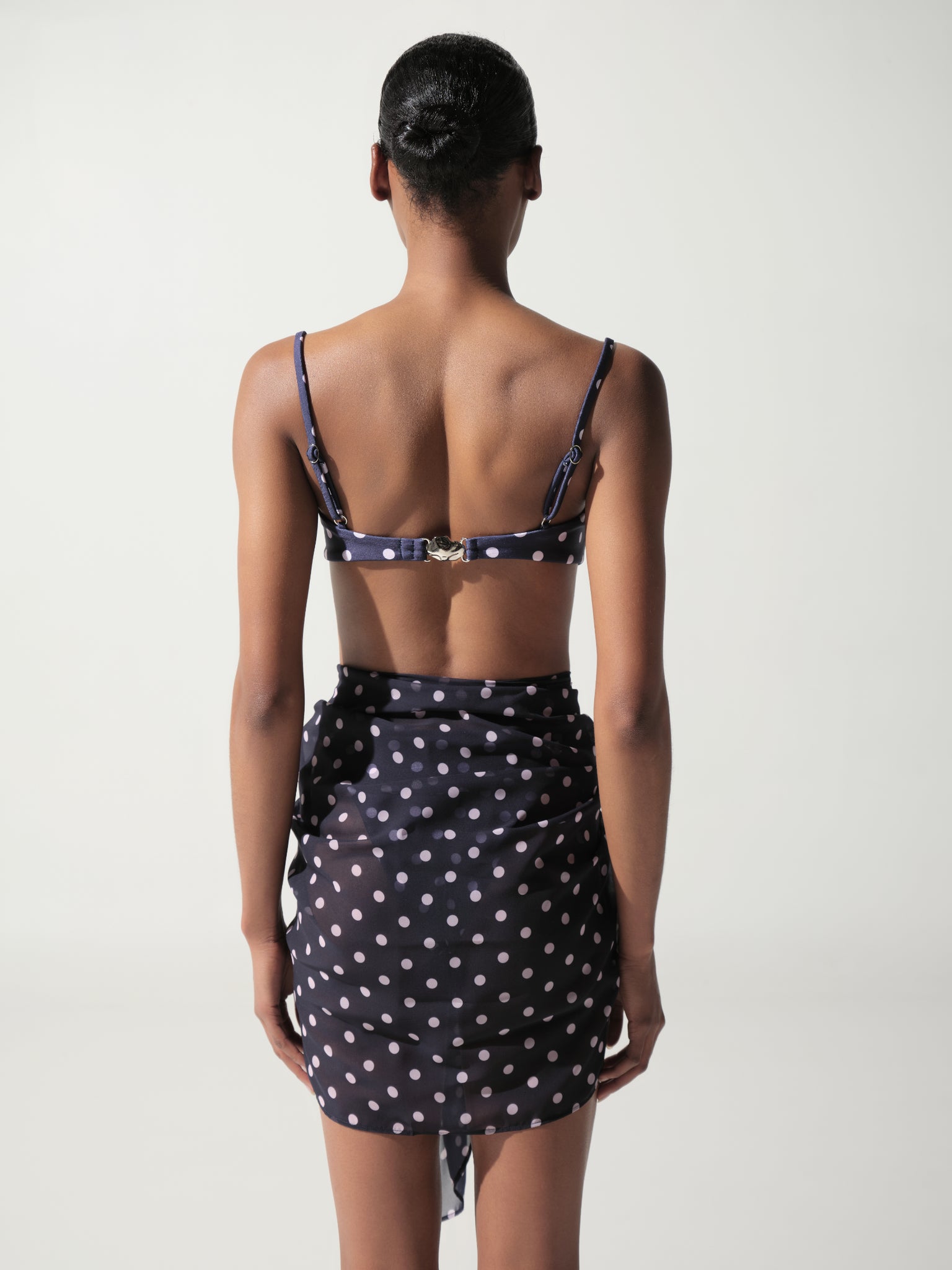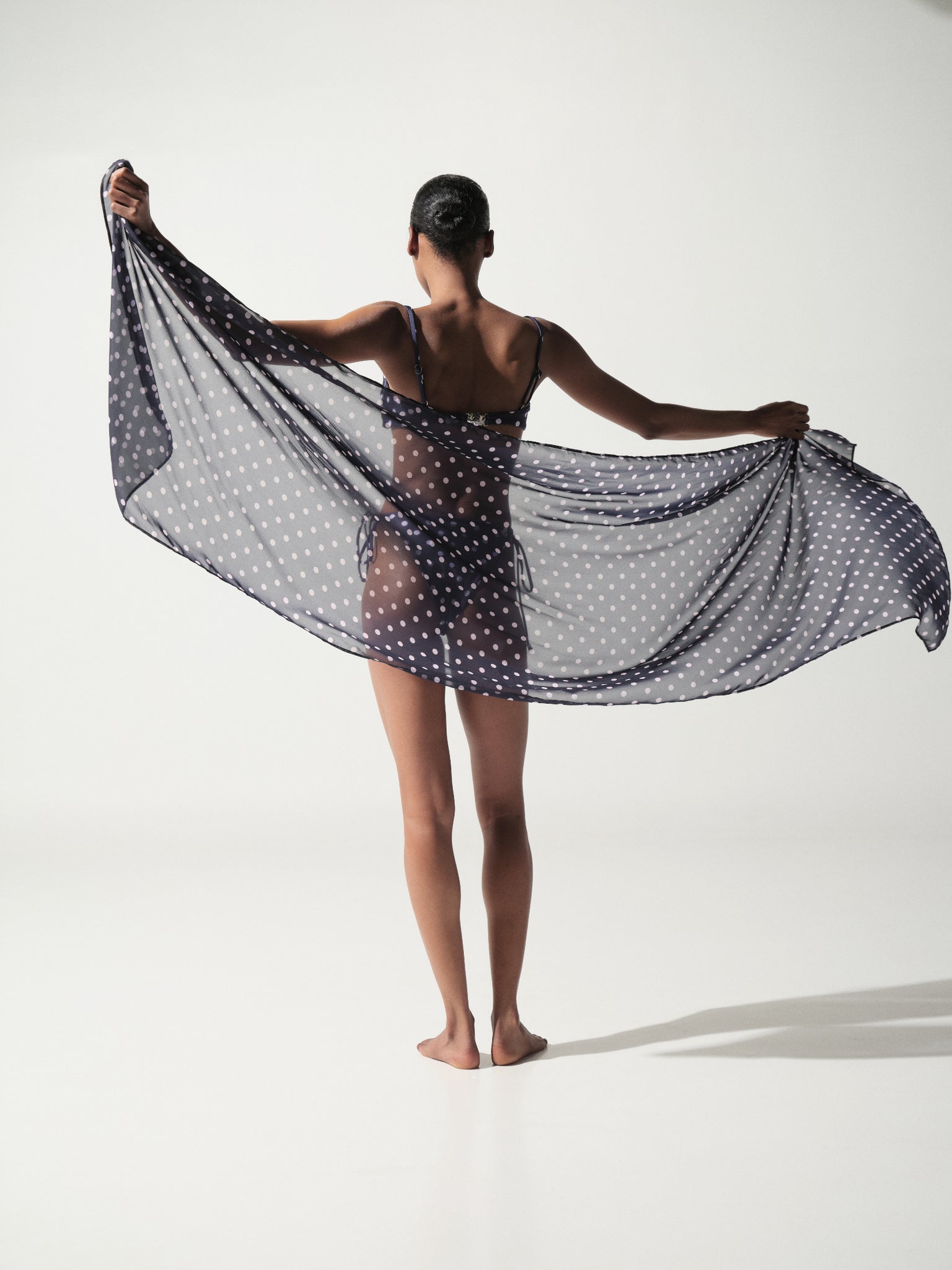 Lava la prenda a mano, del revés, en agua fría durante 5 a 10 minutos. Enjuágala suavemente y sécala a la sombra sobre una superficie plana para mantener su forma. Evita secadora, blanqueadores, limpieza en seco y altas temperaturas. Ponte las joyas después y evita el roce con superficies o accesorios ásperos.