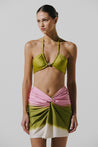 Introduciendo el "Pareo Maple" en Blushing – este mini pareo de cintura alta presenta un detalle de nudo frontal, creando un look divertido y asimétrico. La abertura frontal añade un toque de encanto, convirtiéndolo en la pieza de capa perfecta y elegante para tu traje de baño, ideal para lograr una elegancia sin esfuerzo junto a la playa.