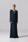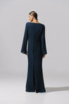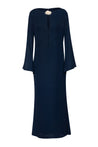 Presentamos el "Amaia Maxi Dress" en Night Blue – un diseño de cuello redondo con mangas acampanadas y herraje Baobab al frente. Con abertura y cremallera en la parte trasera, completamente forrado y de largo maxi.