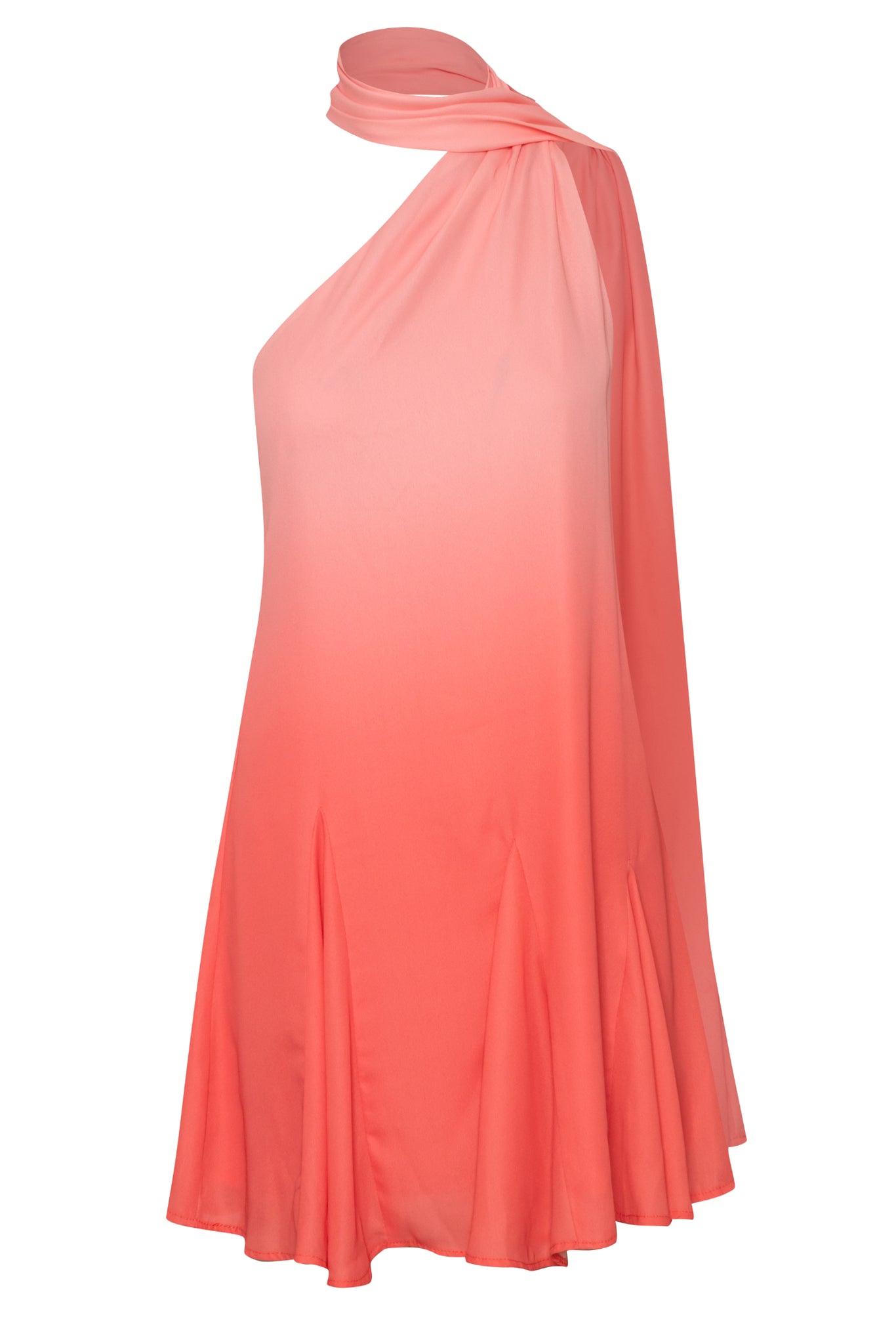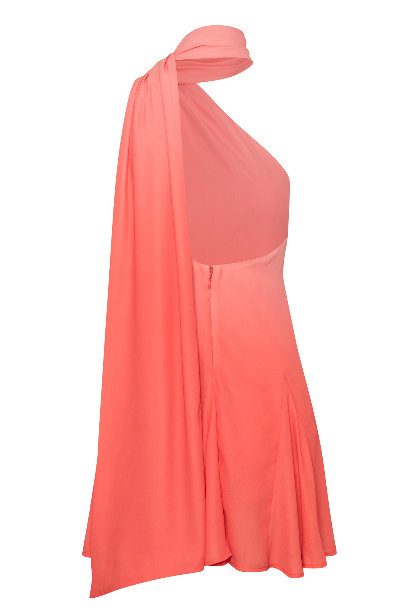 Presentamos el "Ari Mini Dress" en Coralina – un diseño de un solo hombro con espalda descubierta y cuello con banda. Con tira ajustable y godets en la falda que aportan movimiento. Cierre con cremallera en la parte trasera, completamente forrado y de largo mini.