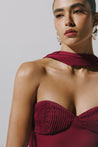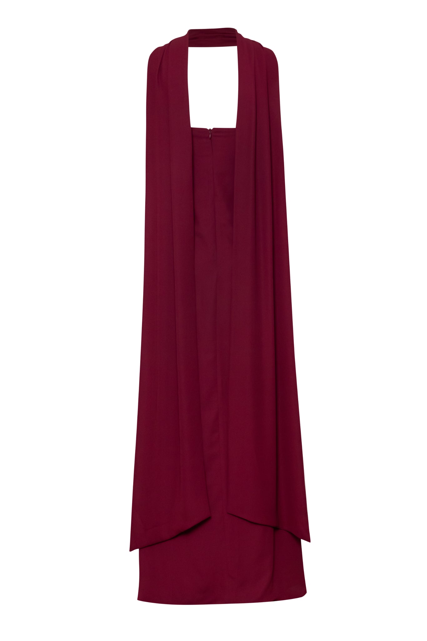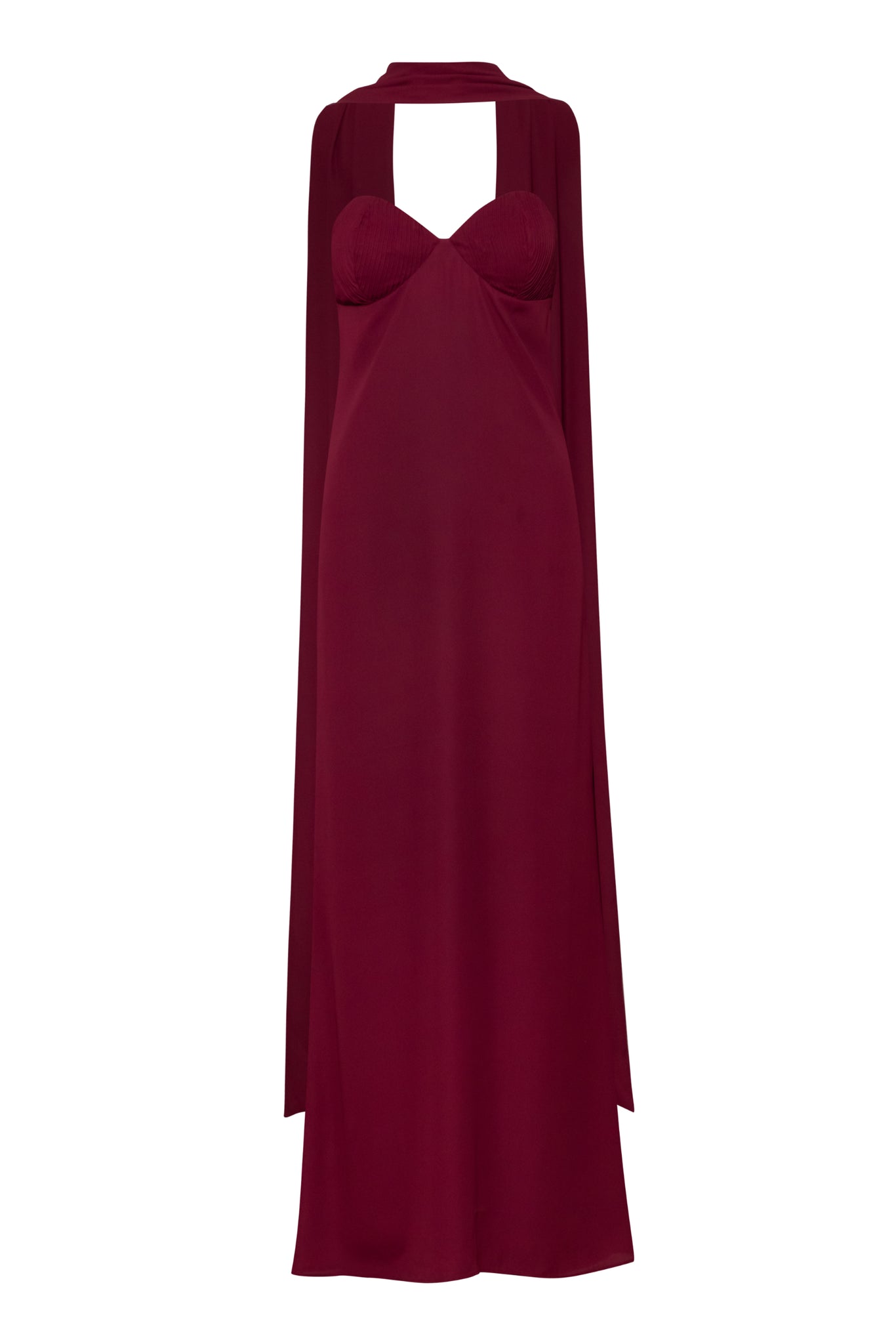 Presentamos el "Athena Maxi Dress" en Cabernet – un diseño strapless con escote corazón y cuello con banda. Con espalda descubierta, varillas laterales y elástico superior para mejor ajuste. En tela plisada, con cierre de cremallera en la espalda, completamente forrado y de largo maxi.