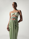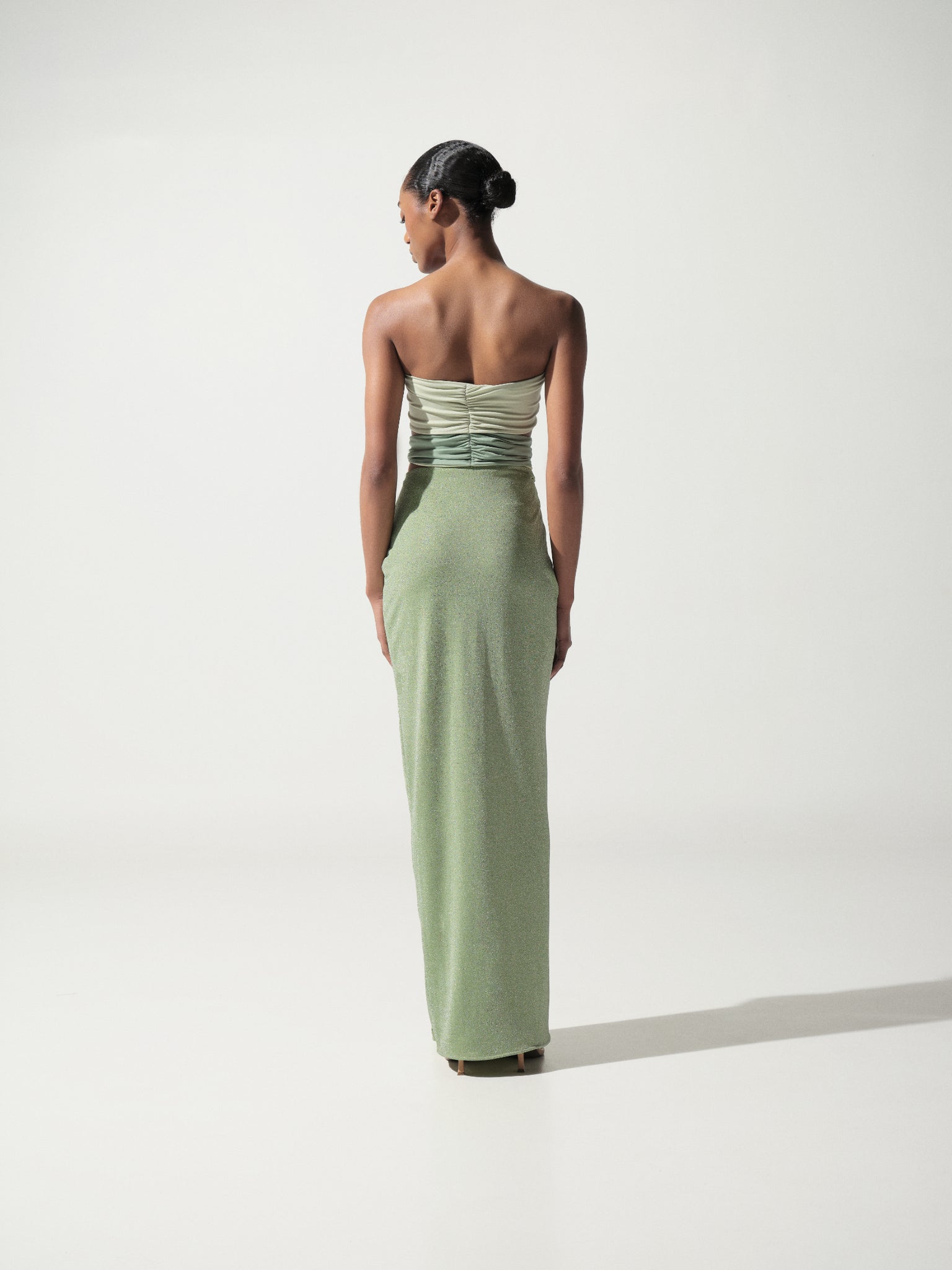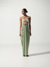 Presentamos el "Giselle Maxi Dress" en Pistacho – un diseño de dos piezas separadas con top strapless, detalle de nudo y caĂda en cascada. Con fruncido y herraje Baobab al frente. La falda incluye abertura frontal y cintura elástica. Completamente forrado y de largo maxi.