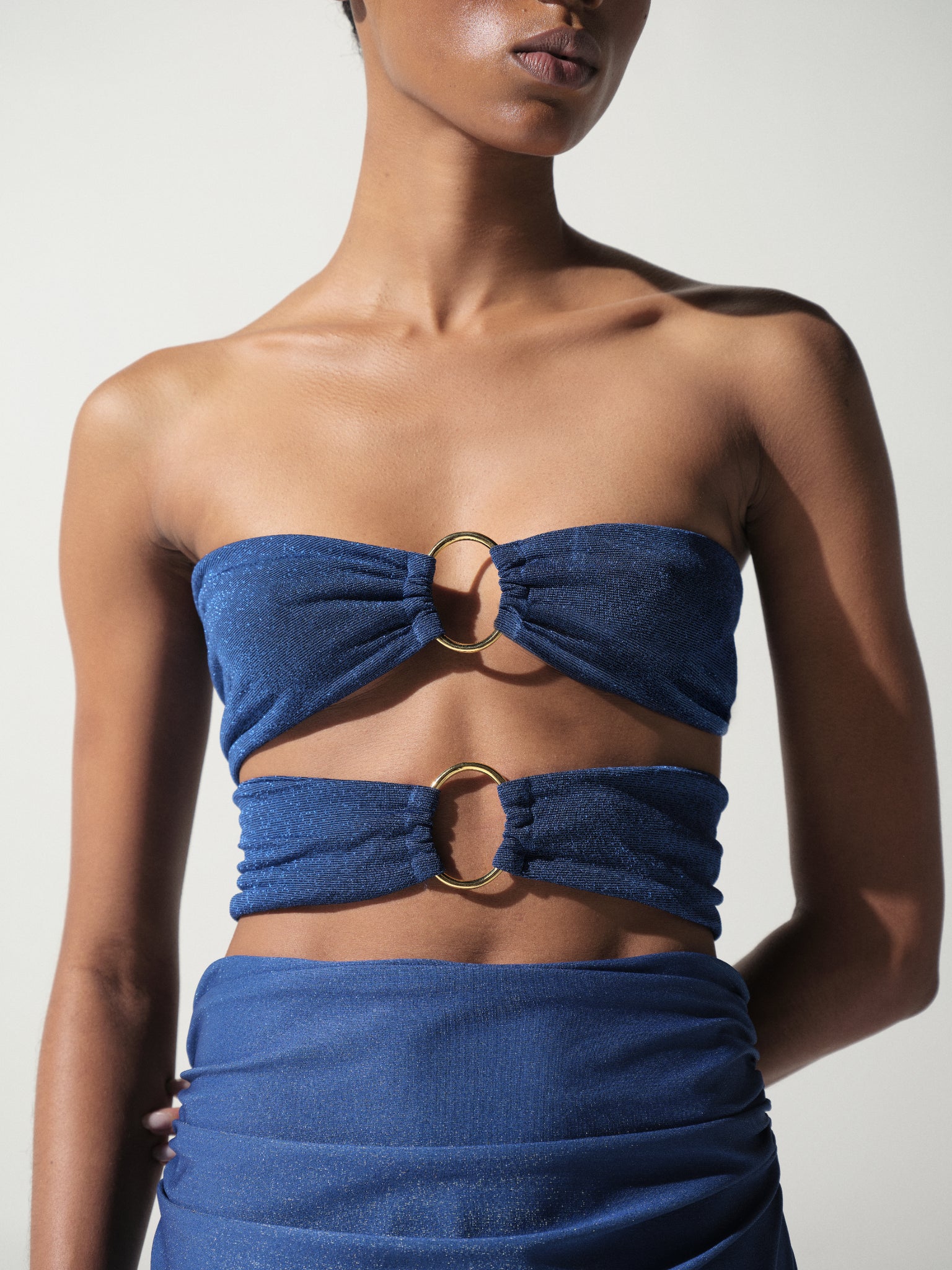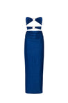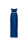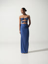 Presentamos el "Isla Maxi Dress" en Black – un diseño de dos piezas con top strapless, detalle de argollas al frente y fruncido que define la silueta. Con recortes frontales y abertura lateral, completamente forrado y de largo maxi.