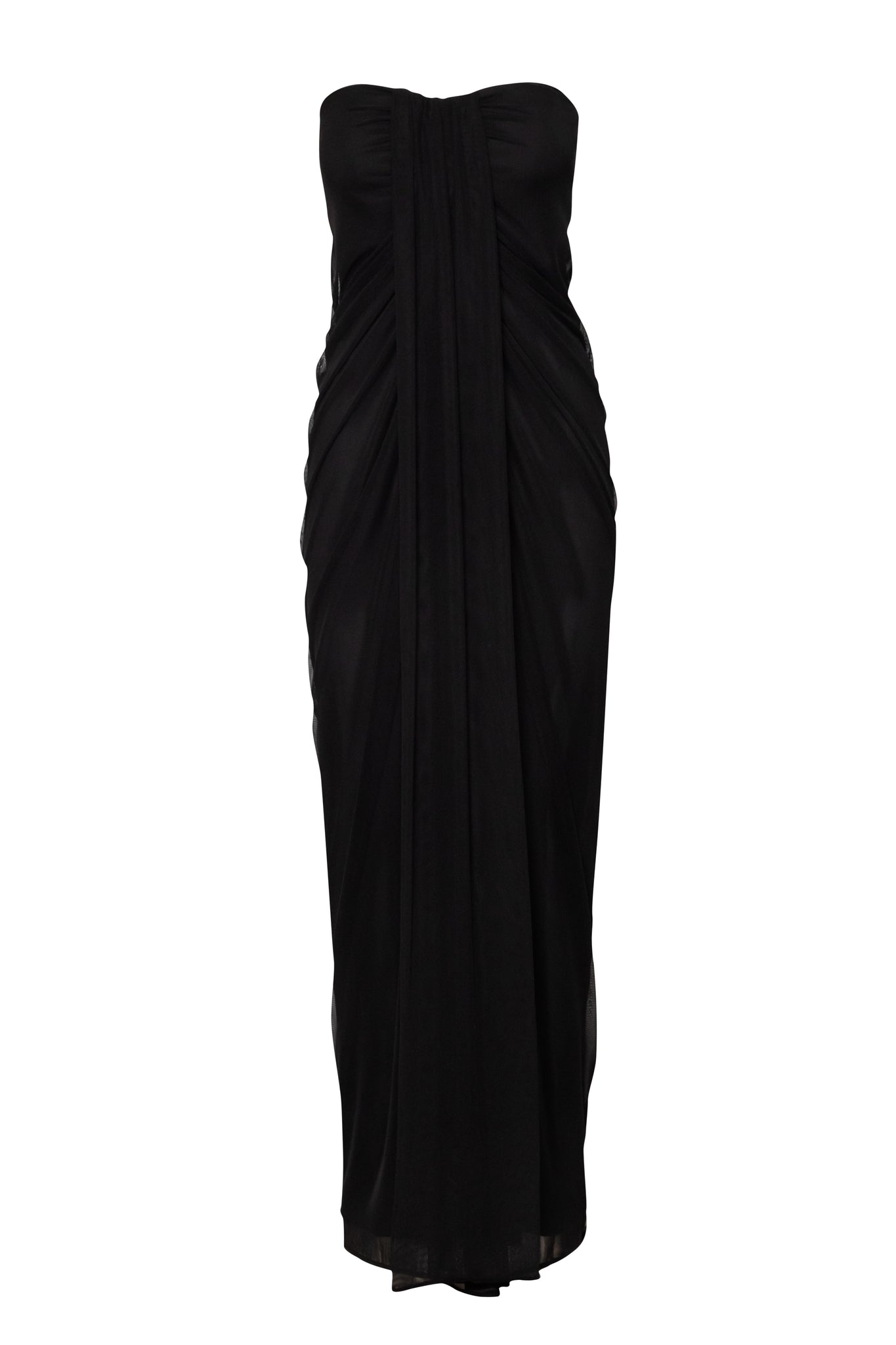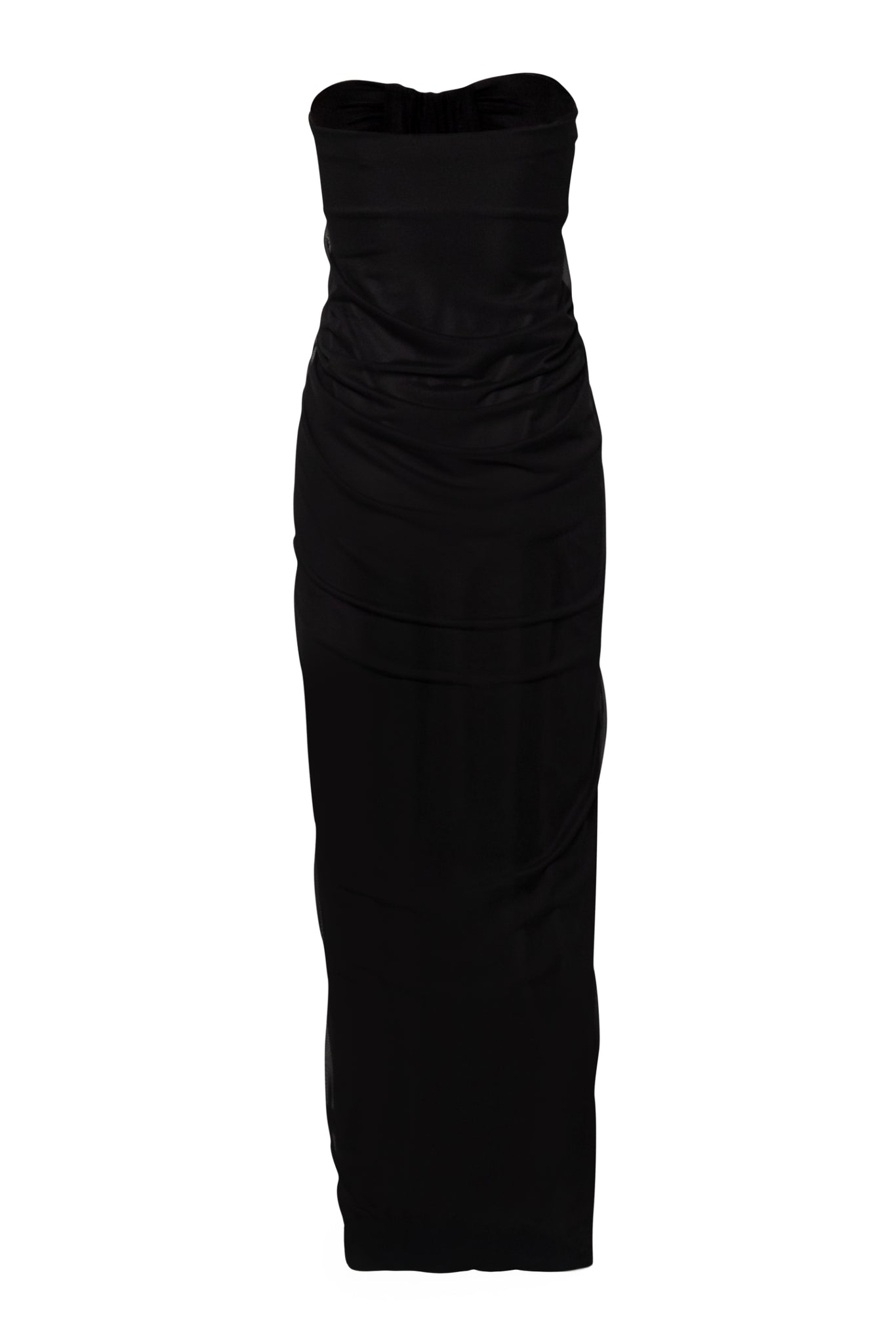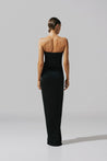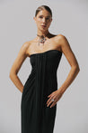Presentamos el "Lena Maxi Dress" en Black – un diseño strapless con detalle en cascada y fruncido que resalta la silueta. En malla con abertura frontal, elástico superior para mejor ajuste, completamente forrado y de largo maxi.
