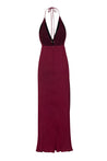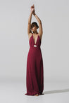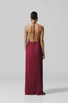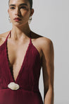 Presentamos el "Prato Maxi Dress" en Cabernet – un diseño de escote en V con espalda descubierta y tiras para amarrar. Con herraje Baobab al frente, pinzas delanteras y elástico superior para mejor ajuste. En tela plisada, con cierre de cremallera en la parte trasera, completamente forrado y de largo maxi.