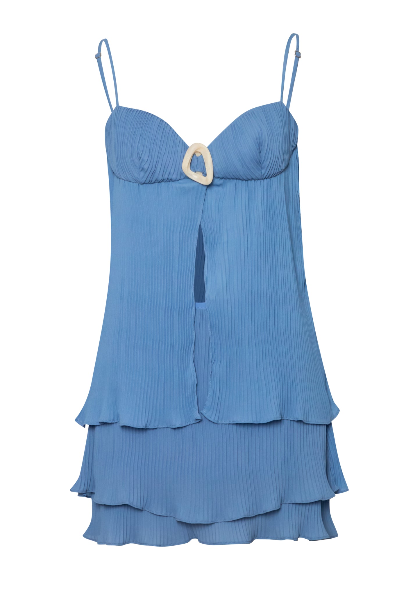 Presentamos el "Lima Top" en Ibiza Blue – un diseño de escote balconette con tiras ajustables y herraje Baobab al frente. Con abertura frontal y cierre con cremallera en la parte trasera. En tela plisada, completamente forrado para un ajuste estructurado y elegante.