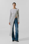 Introduciendo el "Top Masaki" en Plata – este top de manga larga acanalado presenta un cuello redondo y una abertura lateral que se extiende desde la cintura hasta el tobillo. Su color intenso y diseño elegante ofrecen comodidad y estilo, convirtiéndolo en una adición versátil para cualquier guardarropa.