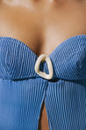 Presentamos el "Lima Top" en Ibiza Blue – un diseño de escote balconette con tiras ajustables y herraje Baobab al frente. Con abertura frontal y cierre con cremallera en la parte trasera. En tela plisada, completamente forrado para un ajuste estructurado y elegante.