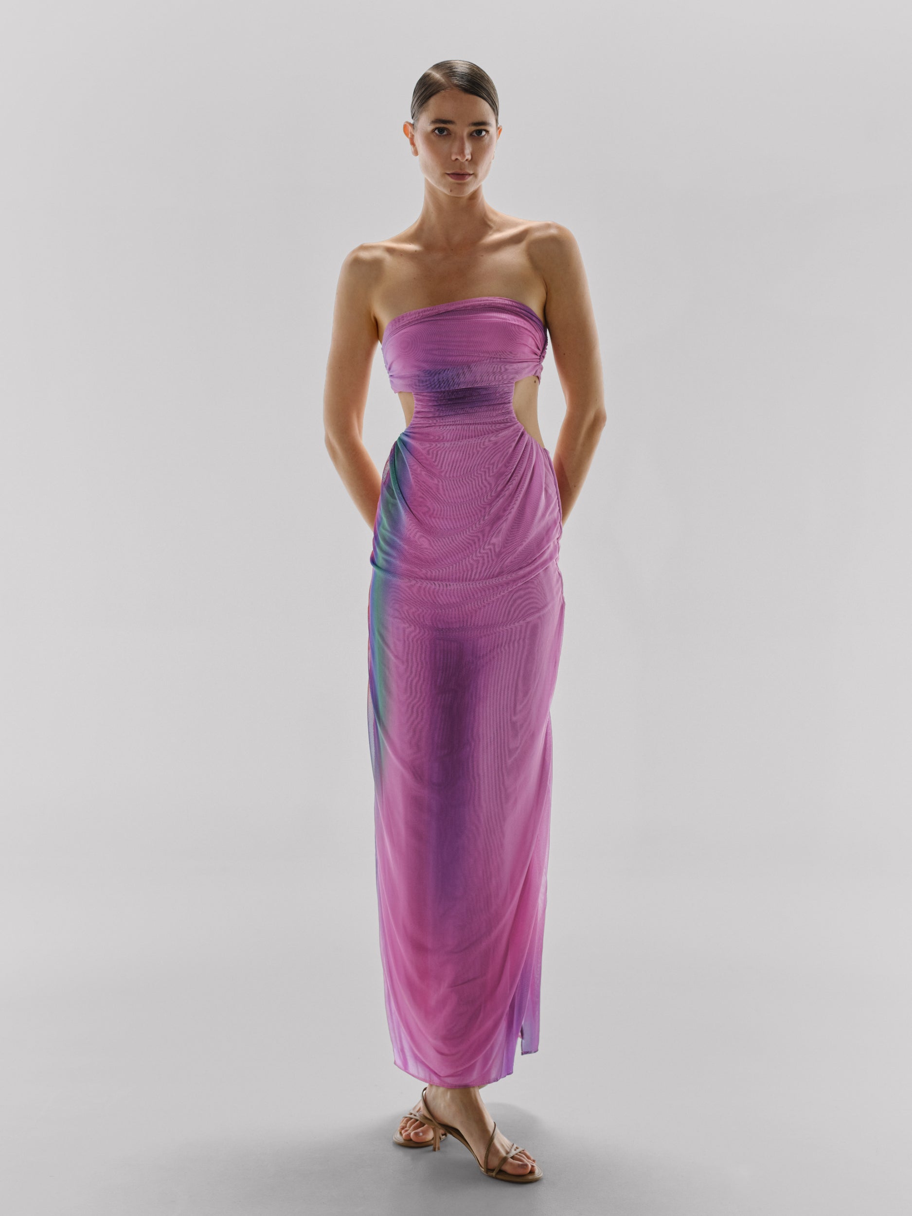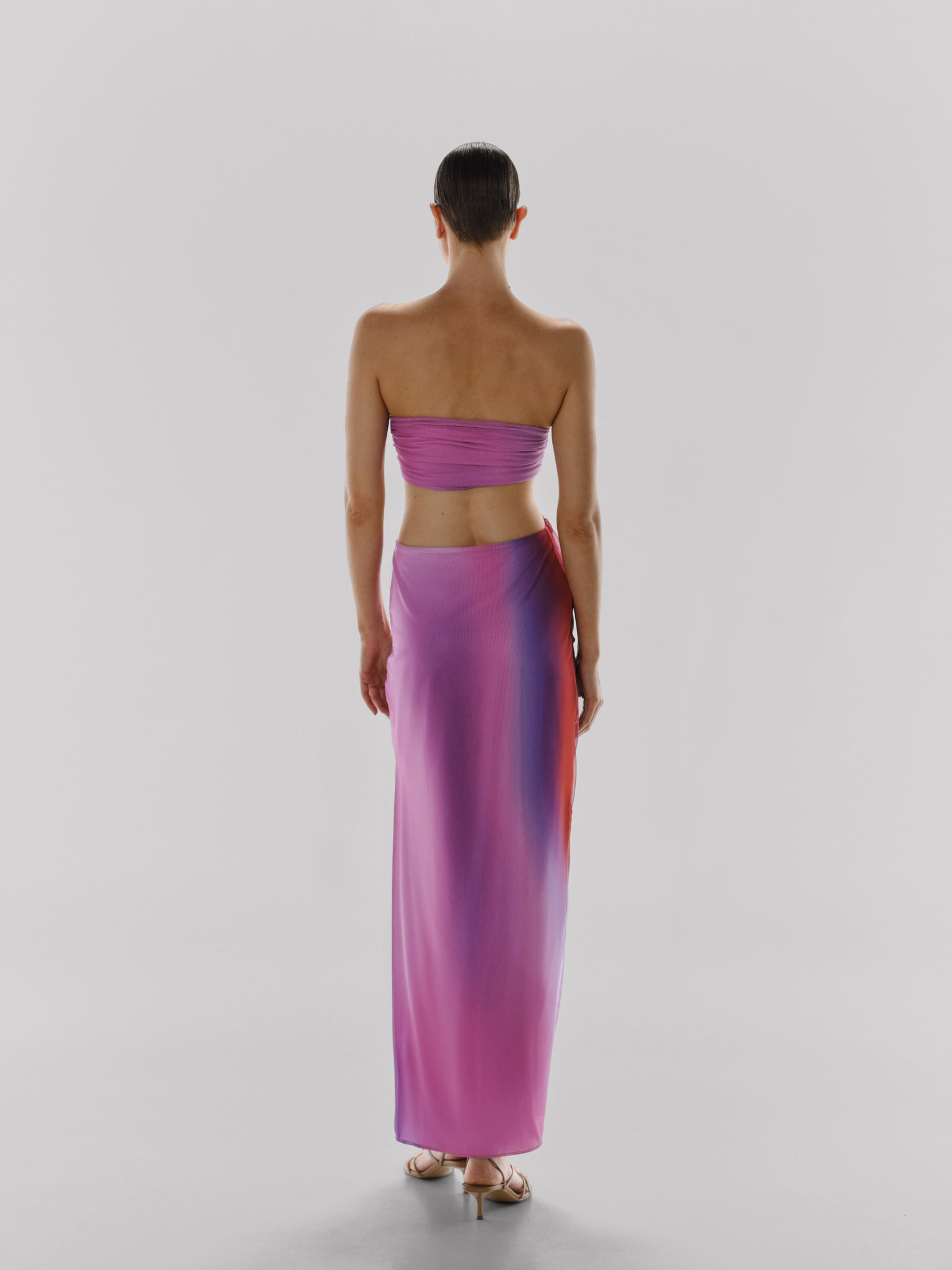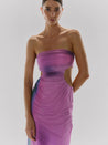 Introduciendo el "Vestido Lila" en Enchanted - un vestido maxi sin tirantes que irradia elegancia con su apariencia de malla. Versátil en diseño, se puede usar como un vestido o separar en un top y una falda al girarlo. Con pequeños recortes laterales y fruncidos en la parte superior, esta prenda ofrece una silueta contemporánea para cualquier ocasión.