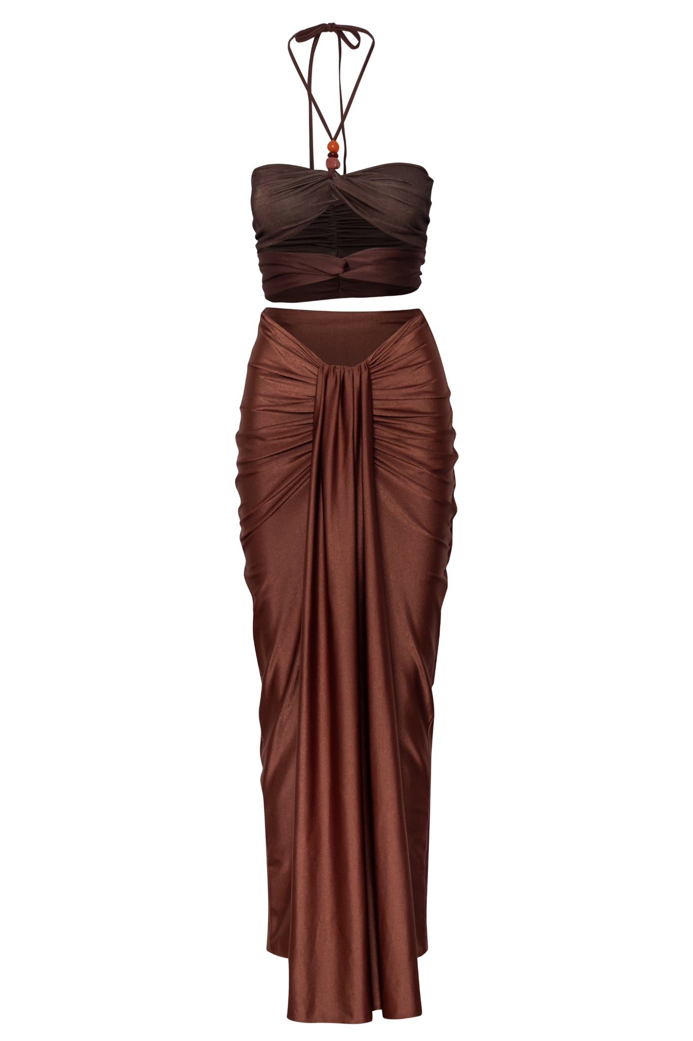 Presentamos el “Dawn Maxi Dress” en Valle del Colca – un diseño de piezas separadas que destaca por su elegancia fluida. Con cuello halter y tiras de amarrar, incorpora un detalle en cascada que aporta movimiento. Adornado con piedras de resina y con recortes frontales y abertura frontal para un toque audaz. Finalizado con elástico en la parte superior para mayor soporte, confeccionado en tela brillante y forrado.
