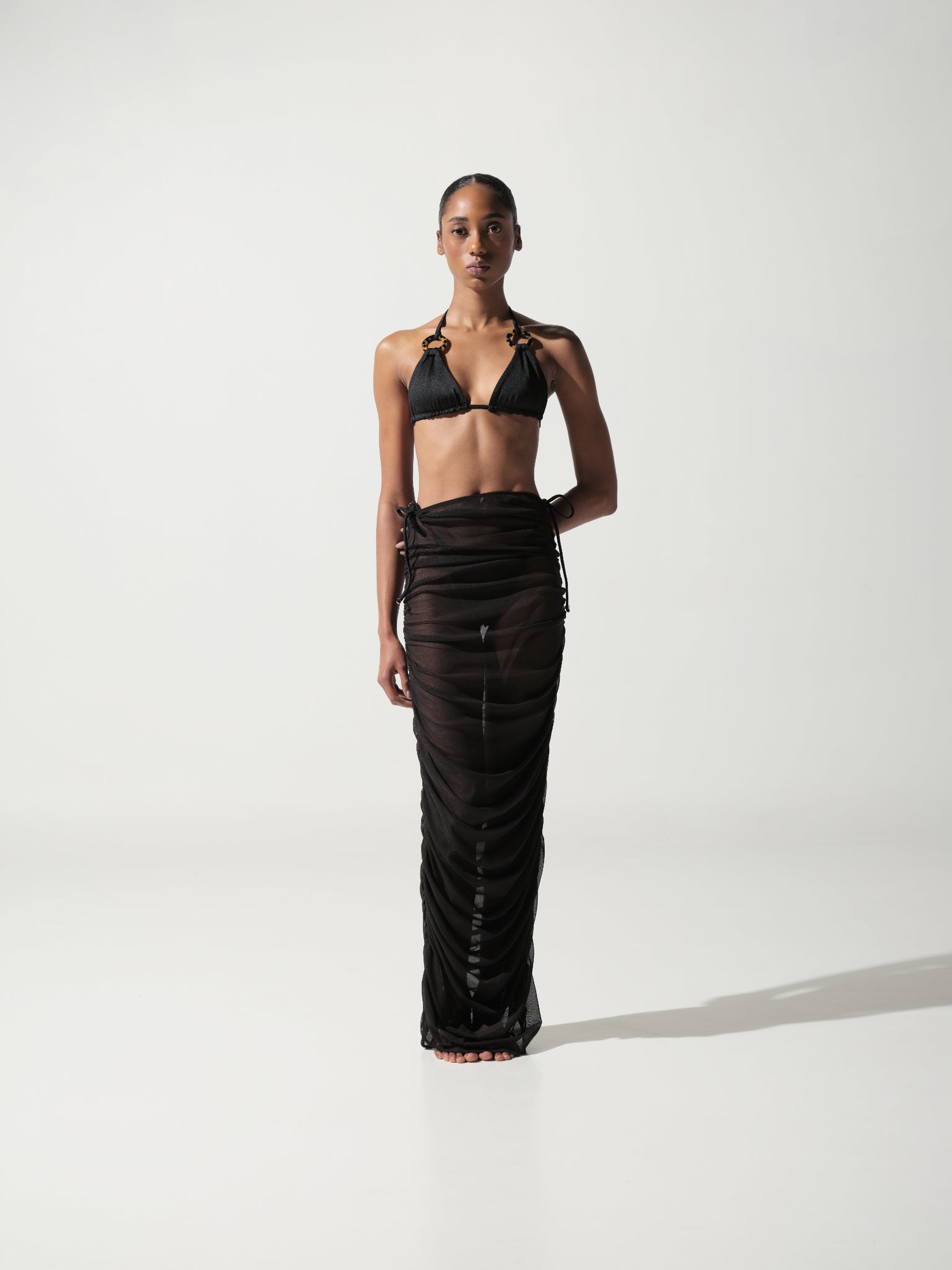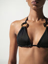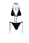 Presentamos el "Kaia Bikini Top" en Black – un diseño triangular con tiras para amarrar y detalle de argolla al frente. Sin varillas ni copas, completamente forrado para un ajuste cĂłmodo y natural. CombĂnalo con el bottom compañero para un look coordinado.