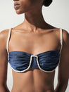 Presentamos el "Lula Bikini Top" en Navy – un diseño de escote balconette con tiras ajustables y fruncido. Con varillas internas, sin copas y cierre con gancho en la espalda. Completamente forrado para soporte y comodidad. CombĂnalo con el bottom compañero para un look coordinado.