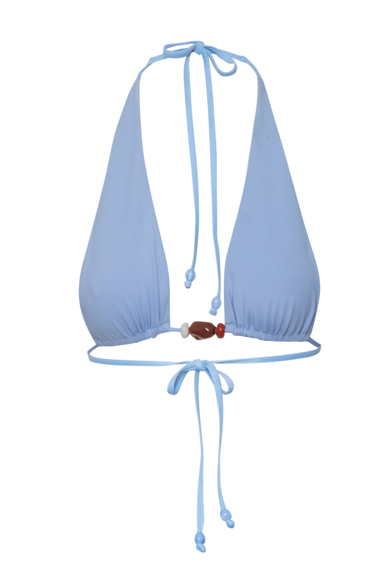 Presentamos el “Jelena Bikini Top” en Laguna 69 – un diseño de top triangular pensado para un ajuste natural y favorecedor. Con tiras de amarrar ajustables y adornado con piedras de resina que aportan un brillo sutil. Diseñado sin varillas y sin copas para mayor comodidad. Finalizado con forro para una sensación suave. Combínalo con el bottom a juego para un look coordinado.