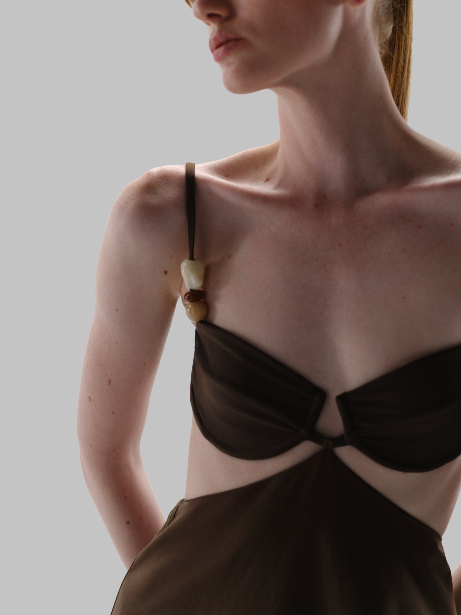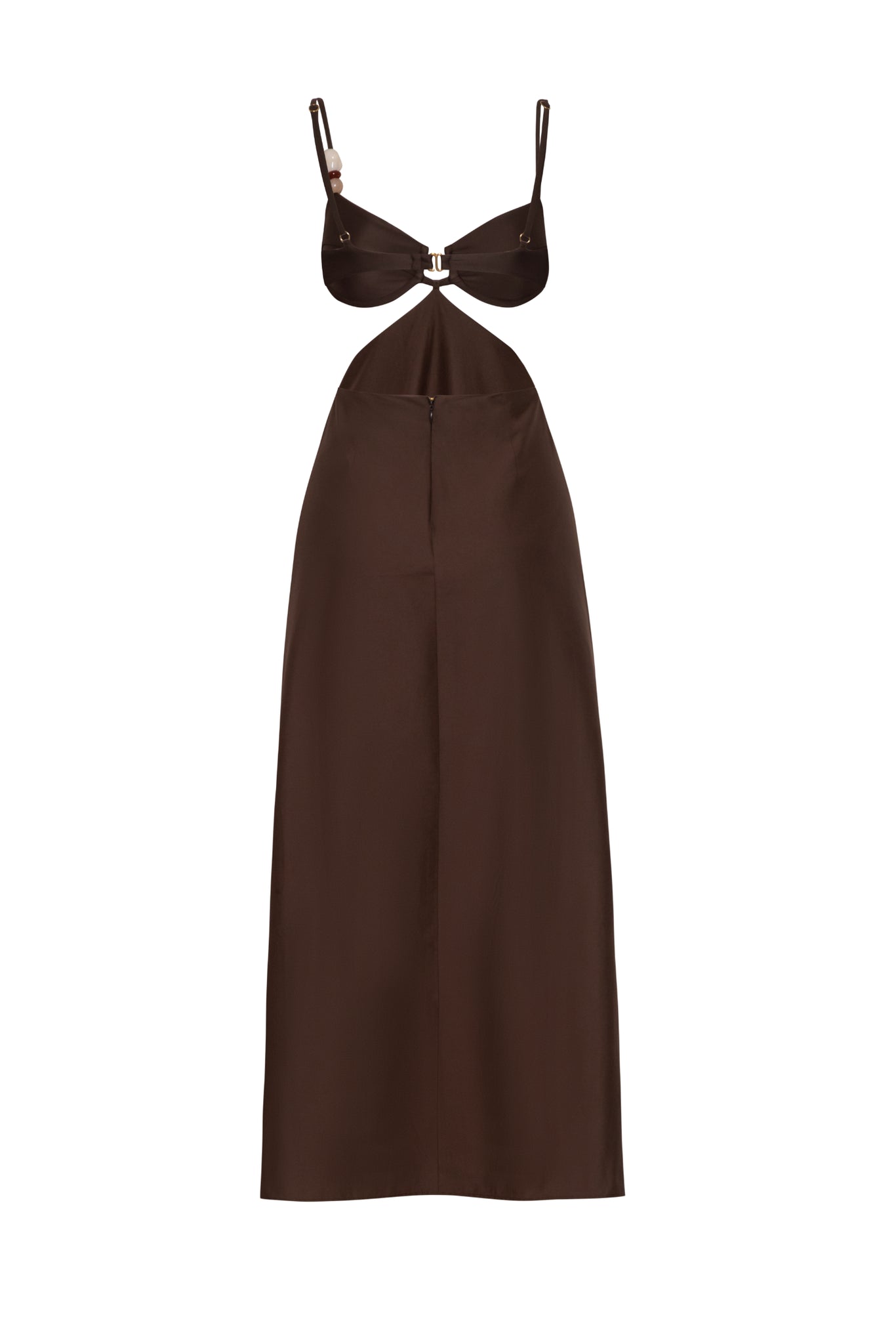 Presentamos el “Kalina Maxi Dress” en Café Villa Rica – un diseño con escote balconette, espalda descubierta y tiras ajustables, adornado con piedras de resina en una de las tiras. Presenta recortes frontales y estructura con varillas para mayor soporte. Cuenta con gancho y cremallera trasera para un ajuste seguro. Con forro y de largo maxi.