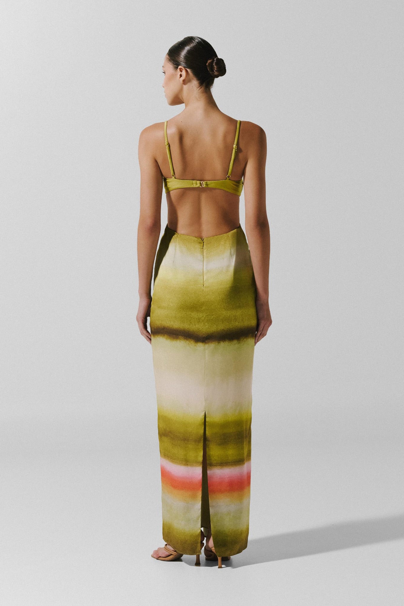 Presentamos el “Kalina Maxi Dress” en Valle Sagrado – una silueta con escote balconette diseñada para realzar y estructurar la figura. Con espalda descubierta y tiras ajustables, adornado con piedras de resina que aportan un brillo sutil. Incorpora recortes frontales y abertura trasera para añadir movimiento. Diseñado con varillas para mayor soporte y finalizado con cremallera trasera, gancho trasero, forrado y largo maxi fluido.