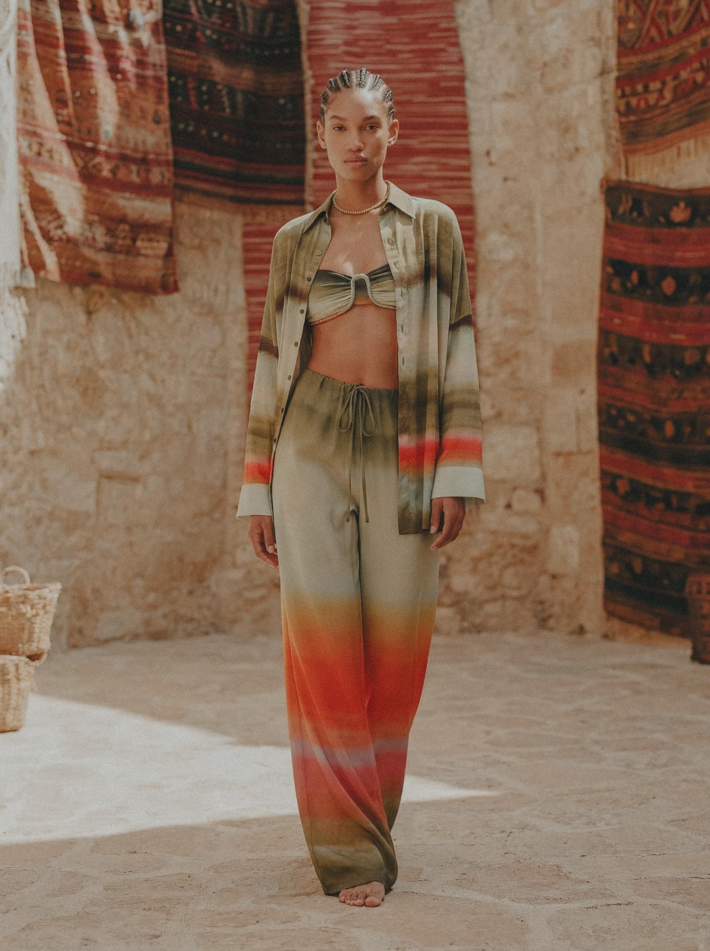 Presentamos el “Lulu Pants” en Valle Sagrado – un diseño de pierna ancha y tiro alto que estiliza la silueta. Cuenta con cintura elástica para un ajuste cómodo y está confeccionado en tejido semitransparente, sin forro, para un acabado ligero y fresco. Combínalo con la camisa a juego para un look coordinado.