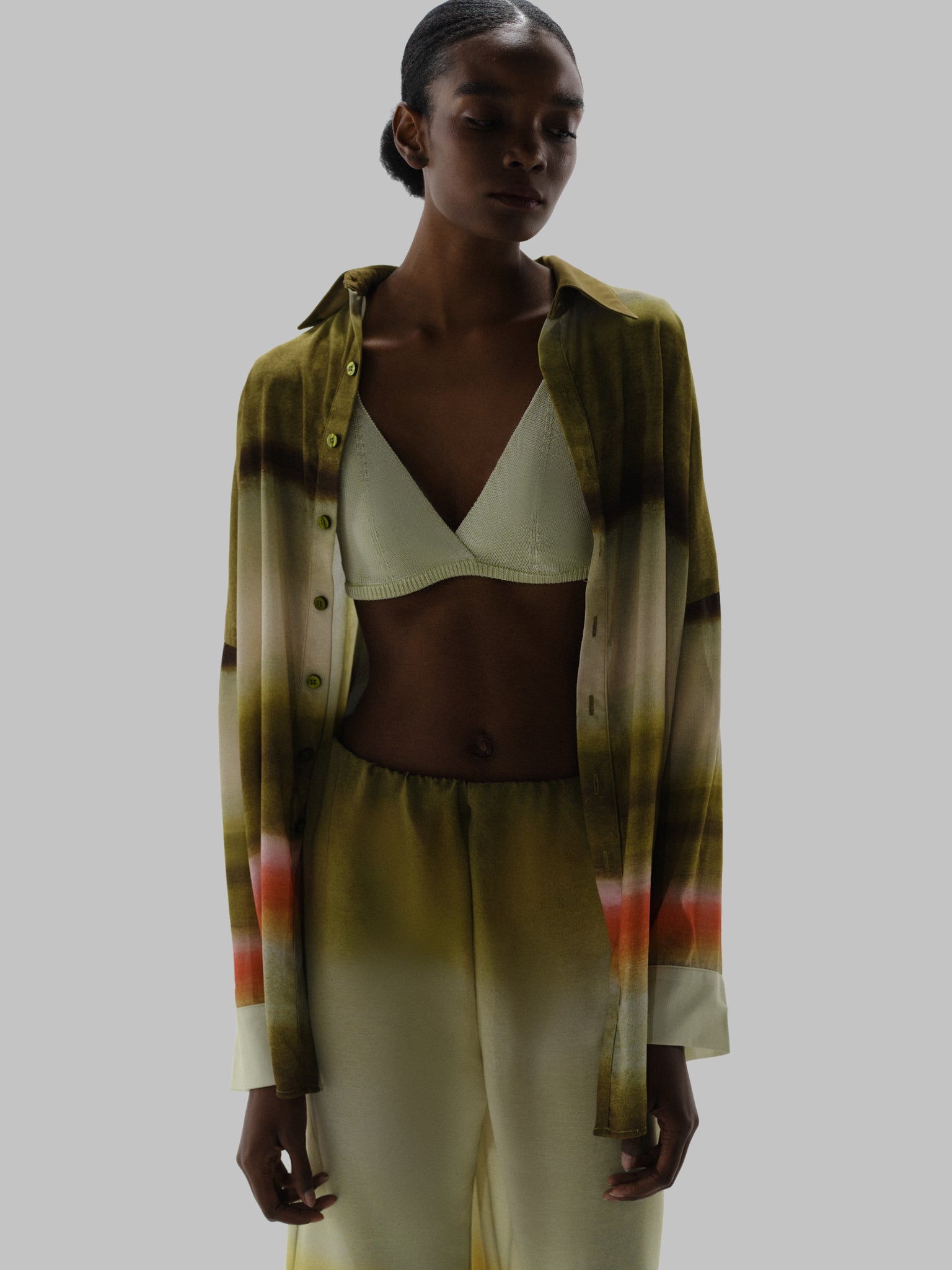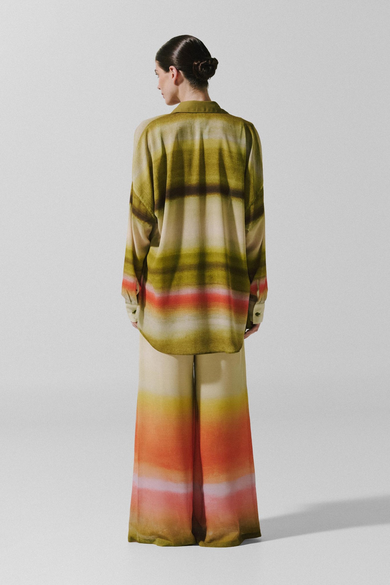 Presentamos la “Lulu Shirt” en Valle Sagrado – un diseño de mangas largas con hombro caído que aporta una silueta relajada. Cuenta con cuello y puños reforzados, además de botones frontales. Confeccionada en tejido semitransparente y sin forro para un acabado ligero. Combínala con el pantalón a juego para un look coordinado.
