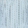 Introducing the "Lion Mini Dress" in Crystal Blue – a sheer, unlined mini dress with a V-neckline and front cut-out. Features knitted fabric, an embellishment, and a fitted silhouette.