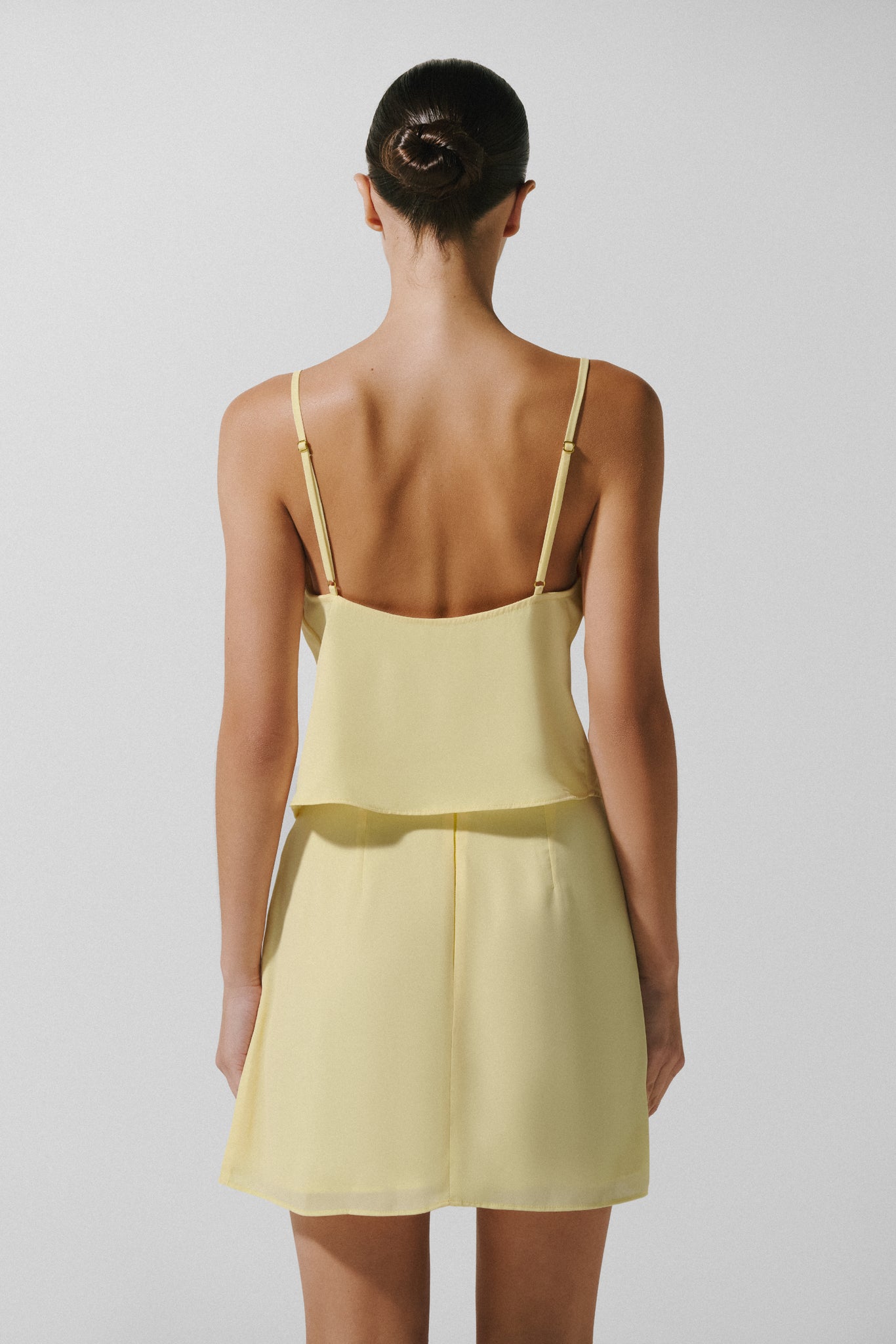 Presentamos el “Carlota Top” en Sol de Cusco – un diseño con escote drapeado, espalda descubierta y tiras ajustables. Presenta detalle de concha y está completamente forrado. Combínalo con la falda a juego para un look coordinado.