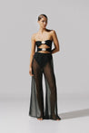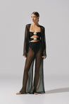 Presentamos el "Gem Pants" en Black – una salida de baño de silueta wide leg con cintura elástica. En malla semitransparente y sin forro para un acabado ligero y natural.