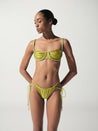 Presentamos el "Lula Bikini Bottom" en Pistacho – un diseño de corte alto con tiras ajustables para amarrar. Con fruncido y cobertura regulable, completamente forrado para un ajuste cĂłmodo y seguro. CombĂnalo con el top compañero para un look coordinado.
