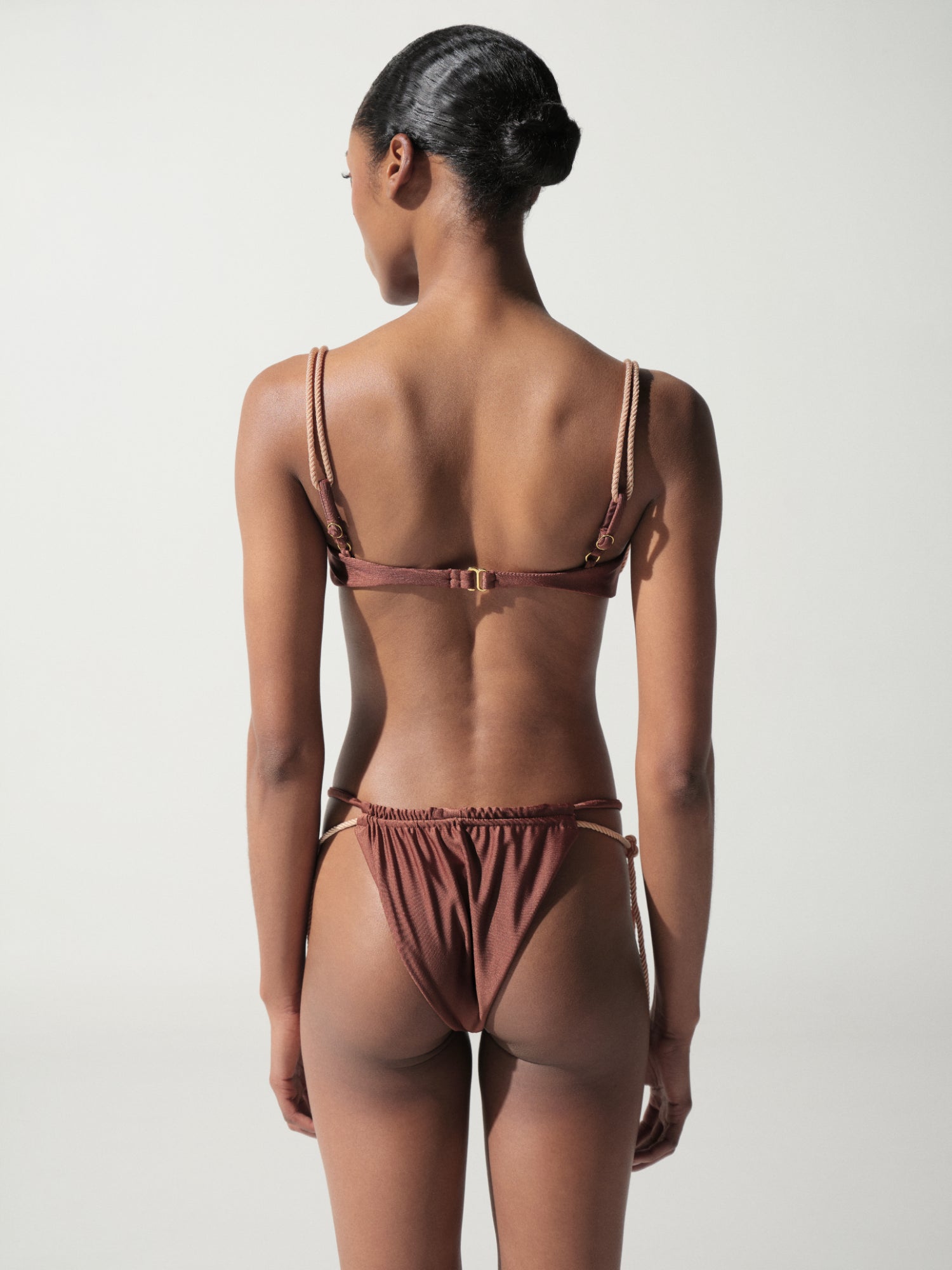 Presentamos el "Lula Bikini Top" en Coffee – un diseño de escote balconette con tiras ajustables y fruncido. Con varillas internas, sin copas y cierre con gancho en la espalda. Completamente forrado para soporte y comodidad. Combínalo con el bottom compañero para un look coordinado.