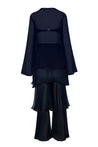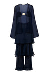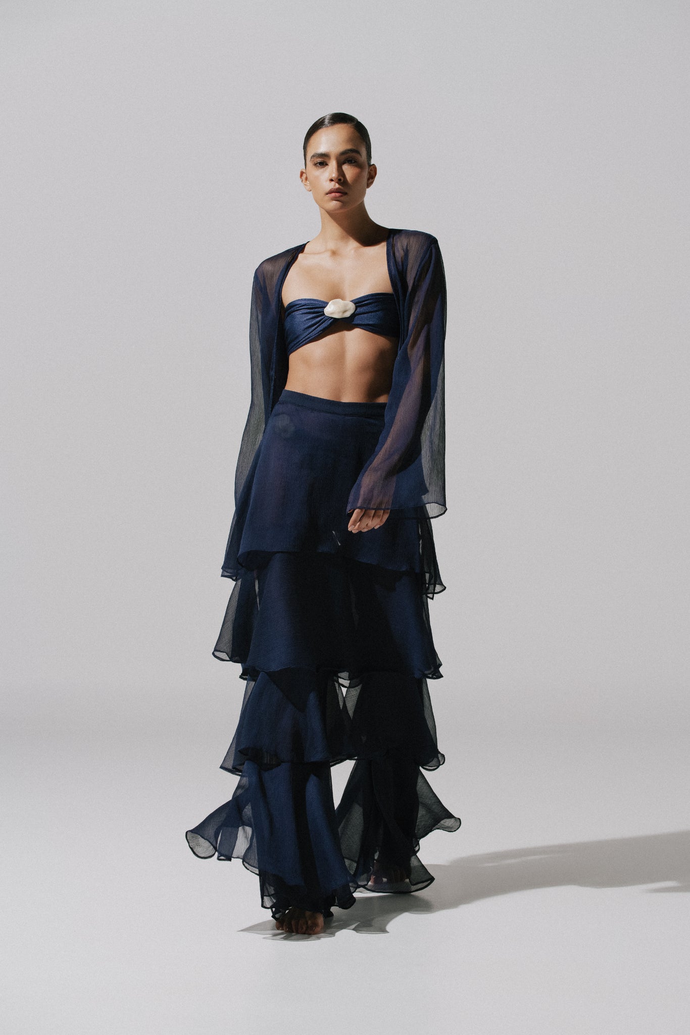 Presentamos la "Malka Blouse" en Night Blue – una blusa de mangas largas con cierre de gancho al frente. En tejido semitransparente y sin forro, ideal para usar como salida de baño.