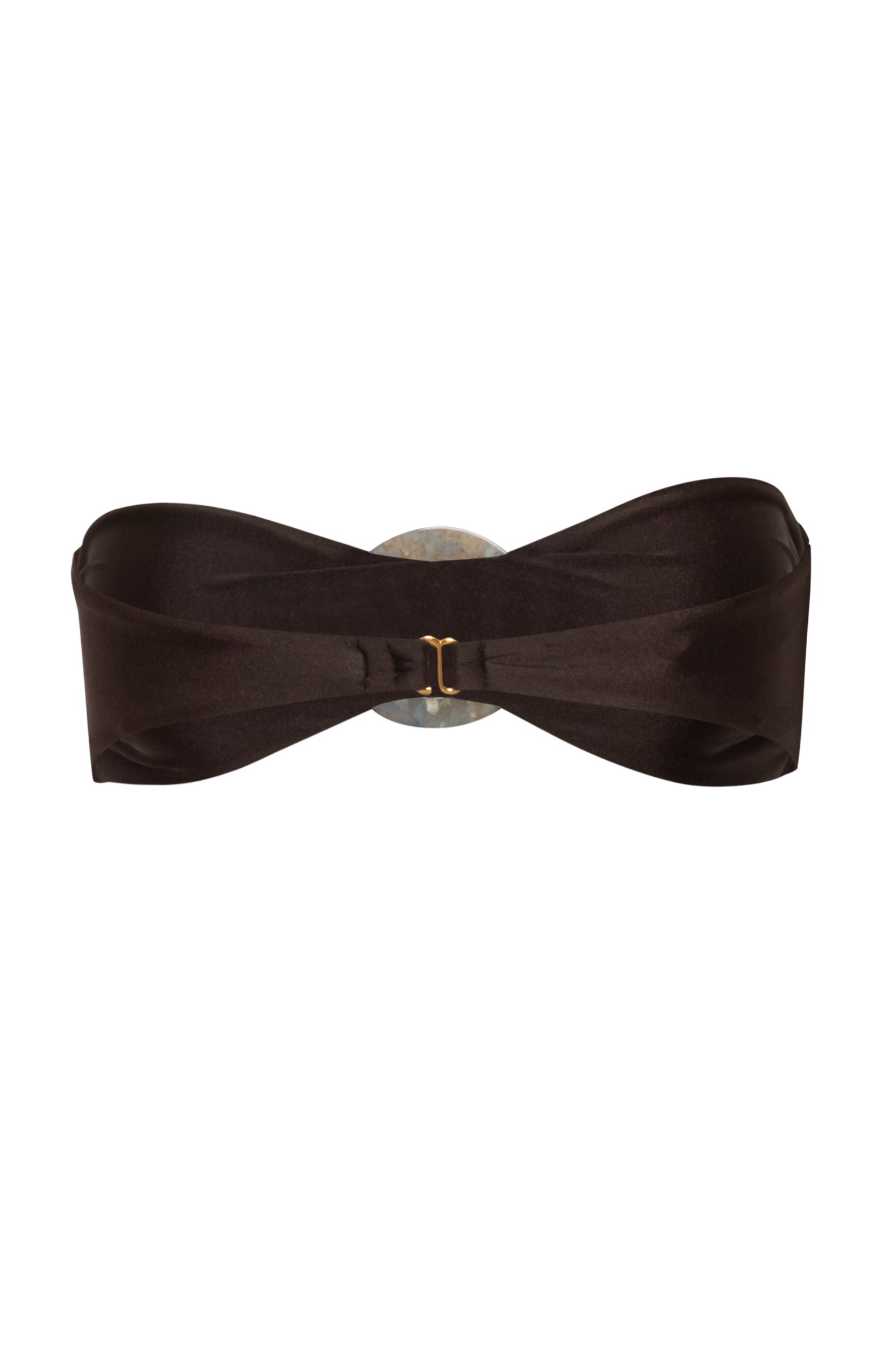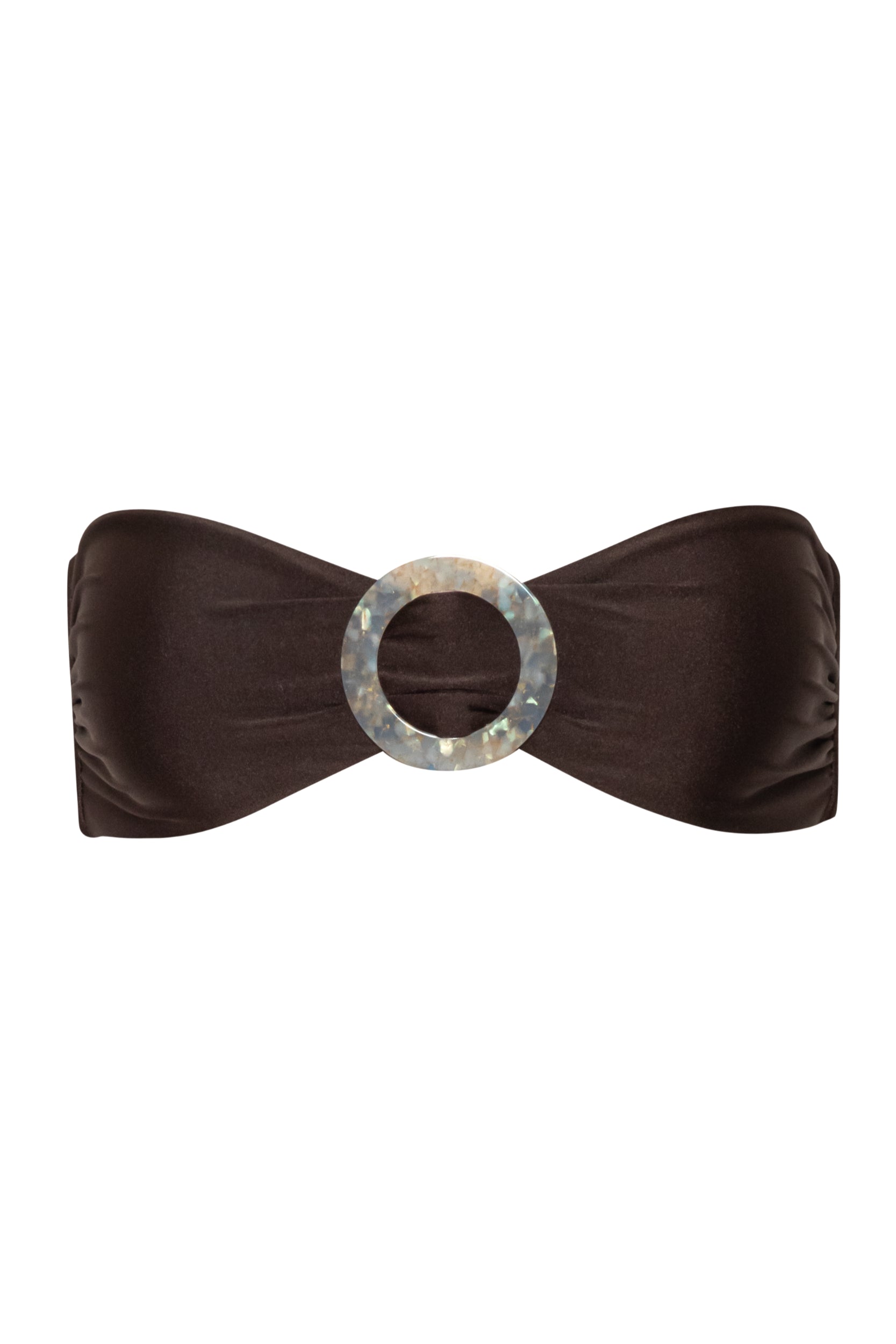Presentamos el "Nala Bikini Top" en Cacao – un diseño strapless con detalle de argolla al frente. Con varillas laterales, sin copas y cierre con gancho en la espalda. Completamente forrado para soporte y comodidad. Combínalo con el bottom compañero para un look coordinado.