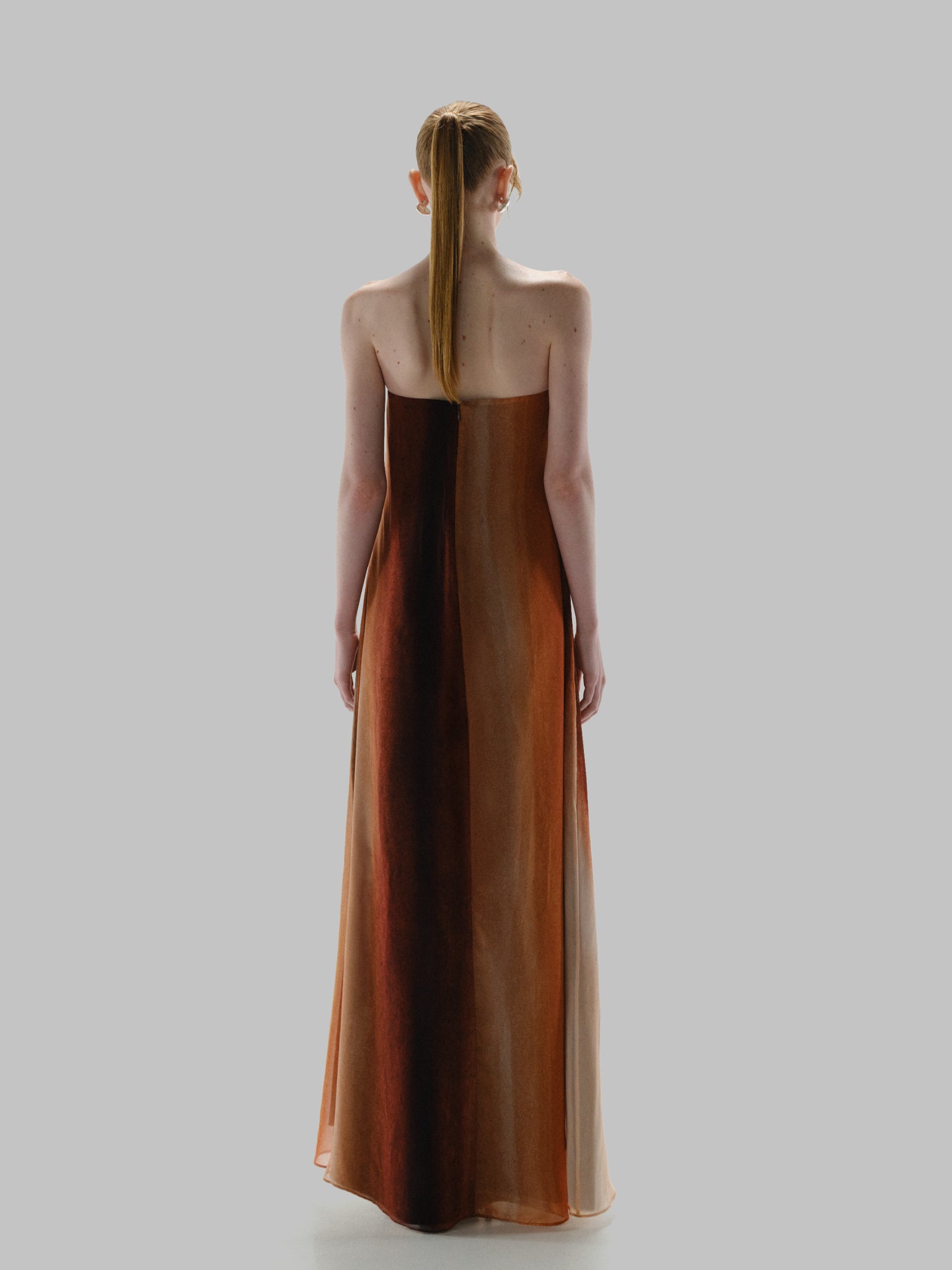 Presentamos el “Nara Maxi Dress” en Tierra Inca – un diseño strapless con pinzas delanteras que realzan y estructuran la silueta. Cuenta con elástico en la parte superior para mayor soporte y cremallera trasera para un ajuste preciso. Con forro y largo maxi que aporta elegancia y fluidez.