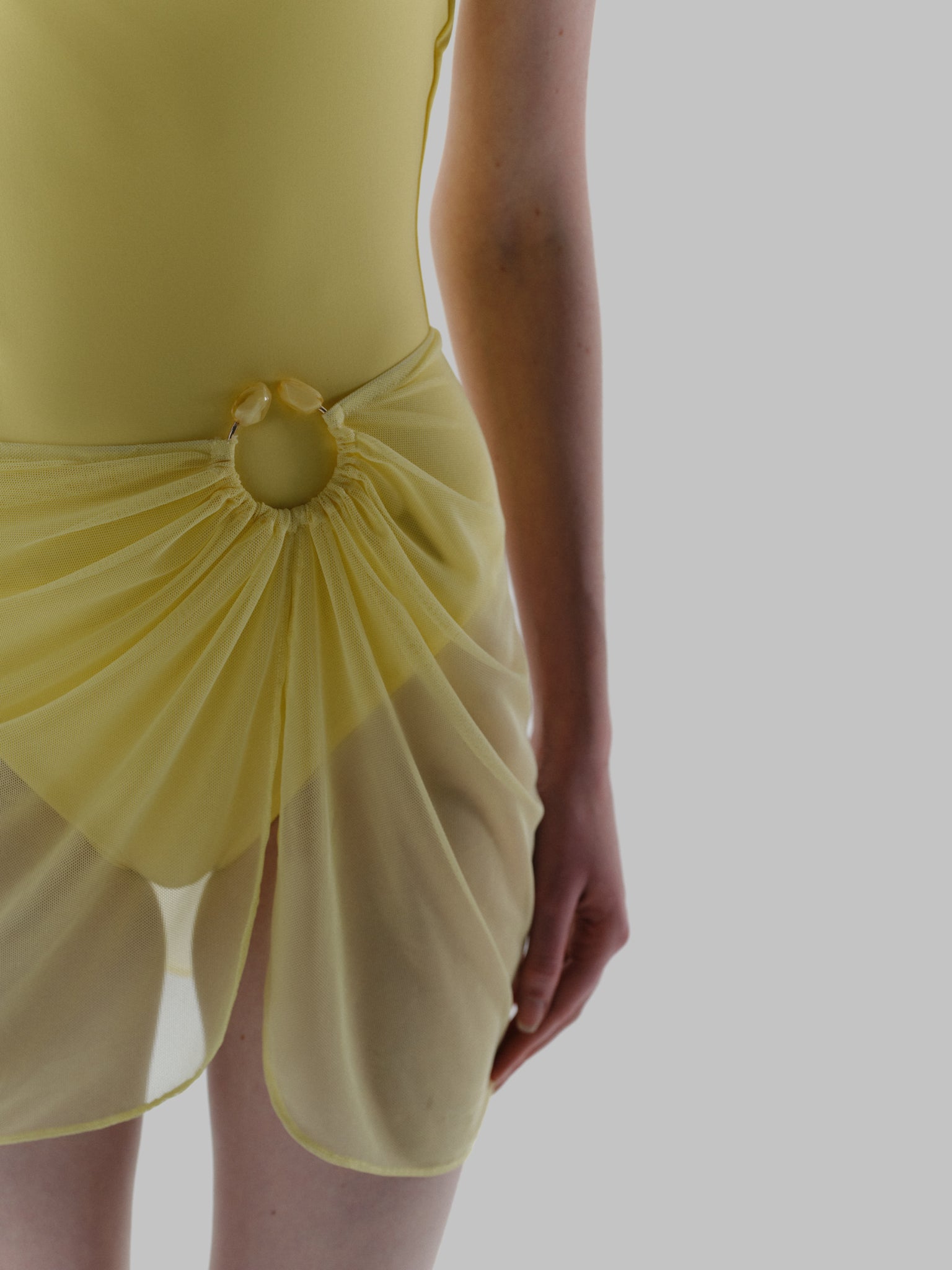 Presentamos el “Nerano Mini Pareo” en Sol de Cusco – una silueta de tiro alto diseñada para realzar la cintura con un aire sofisticado. Con detalle de argolla adornado con piedras de resina y fruncido. Tiene abertura lateral para mayor movimiento y cintura elástica para un ajuste cómodo. Confeccionado en tejido de malla semi transparente, finalizado sin forro y en largo mini.