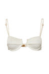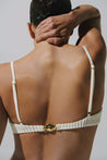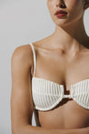 Presentamos el "Roma Bikini Top" en Cacao – un diseño de escote balconette con tiras ajustables y varillas internas para soporte. En tela texturizada, sin copas y con cierre de gancho en la espalda. Completamente forrado. Combínalo con el bottom compañero para un look coordinado.