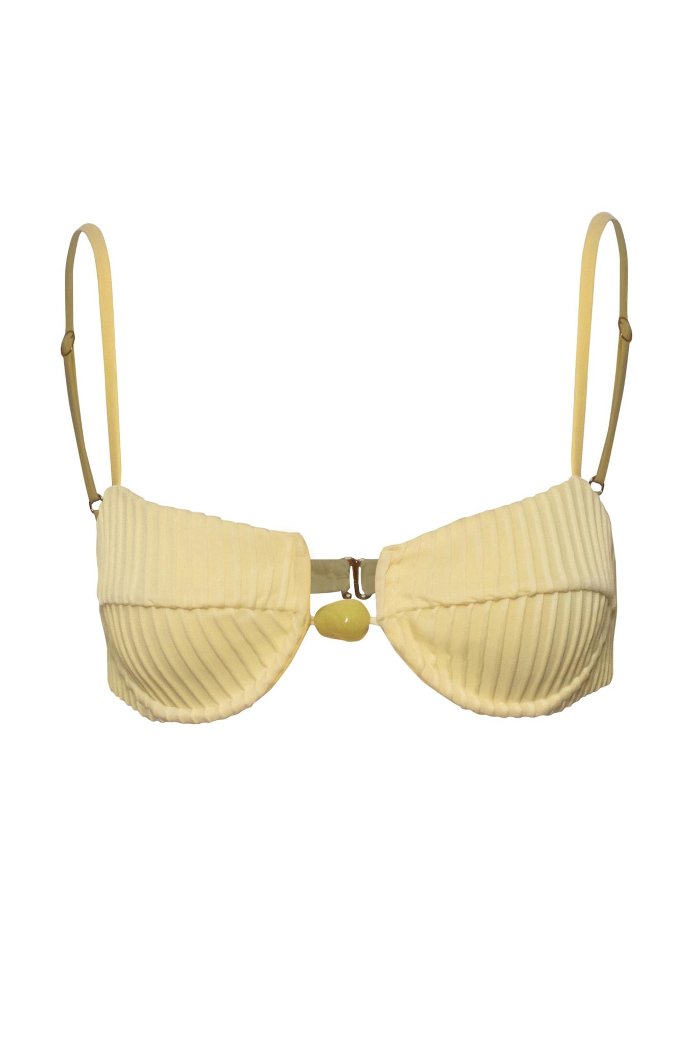 Presentamos el “Roma Bikini Top” en Sol de Cusco – un diseño con escote balconette y tiras ajustables para un ajuste personalizado. Adornado con piedras de resina, cuenta con copas y varillas que brindan mayor soporte y realzan la silueta. Incorpora gancho trasero para un ajuste seguro, está confeccionado en tela texturizada y completamente forrado. Combínalo con el bottom a juego para un look coordinado.